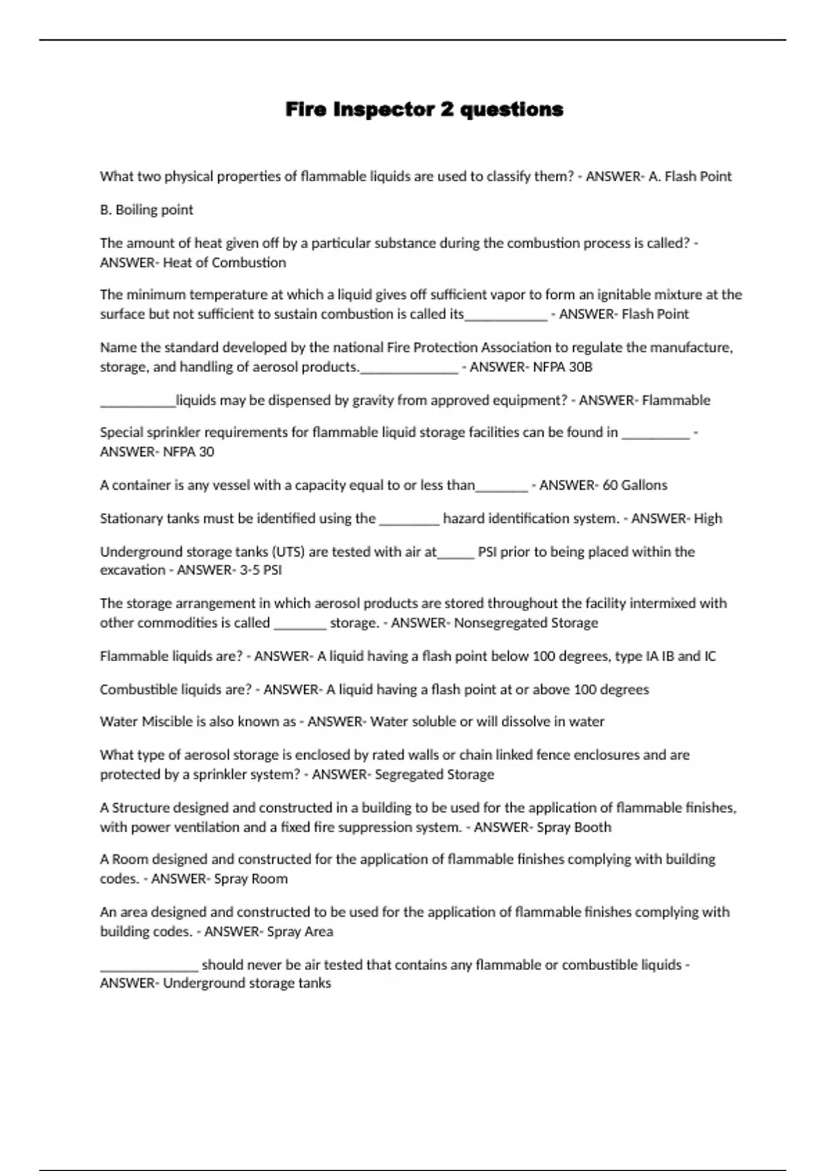 Package deal for Fire Inspector Practice Tests[questions and correct answers]