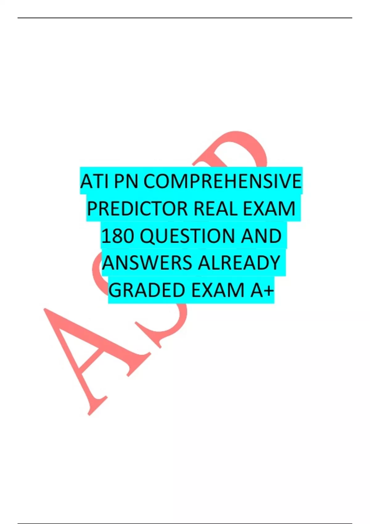 Exam (elaborations) ATI PN COMPREHENSIVE PREDICTOR REAL EXAM 180 Questions and Answers 2 Exam (elaborations) ATI PN COMPREHENSIVE PREDICTOR RETAKE GUIDE (700 Q & A 3 Exam (elaborations) ATI PN COMPREHENSIVE PREDICTOR FORM B 2023 /20224 NEW GENERATION GRADED A LATEST VERSION 4 Exam (elaborations) ATI PN COMPREHENSIVE PREDICTO