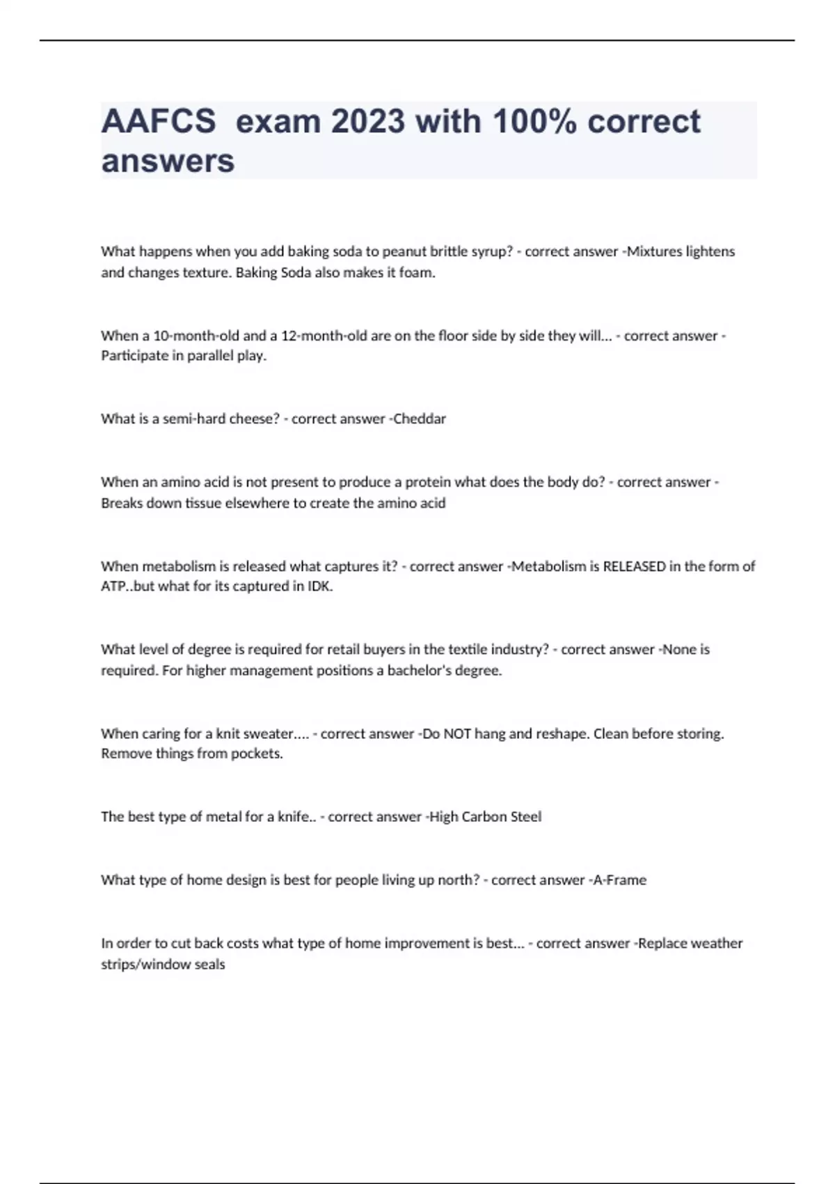 AAFCS Pre-Test exam 2023 with 100% correct answers