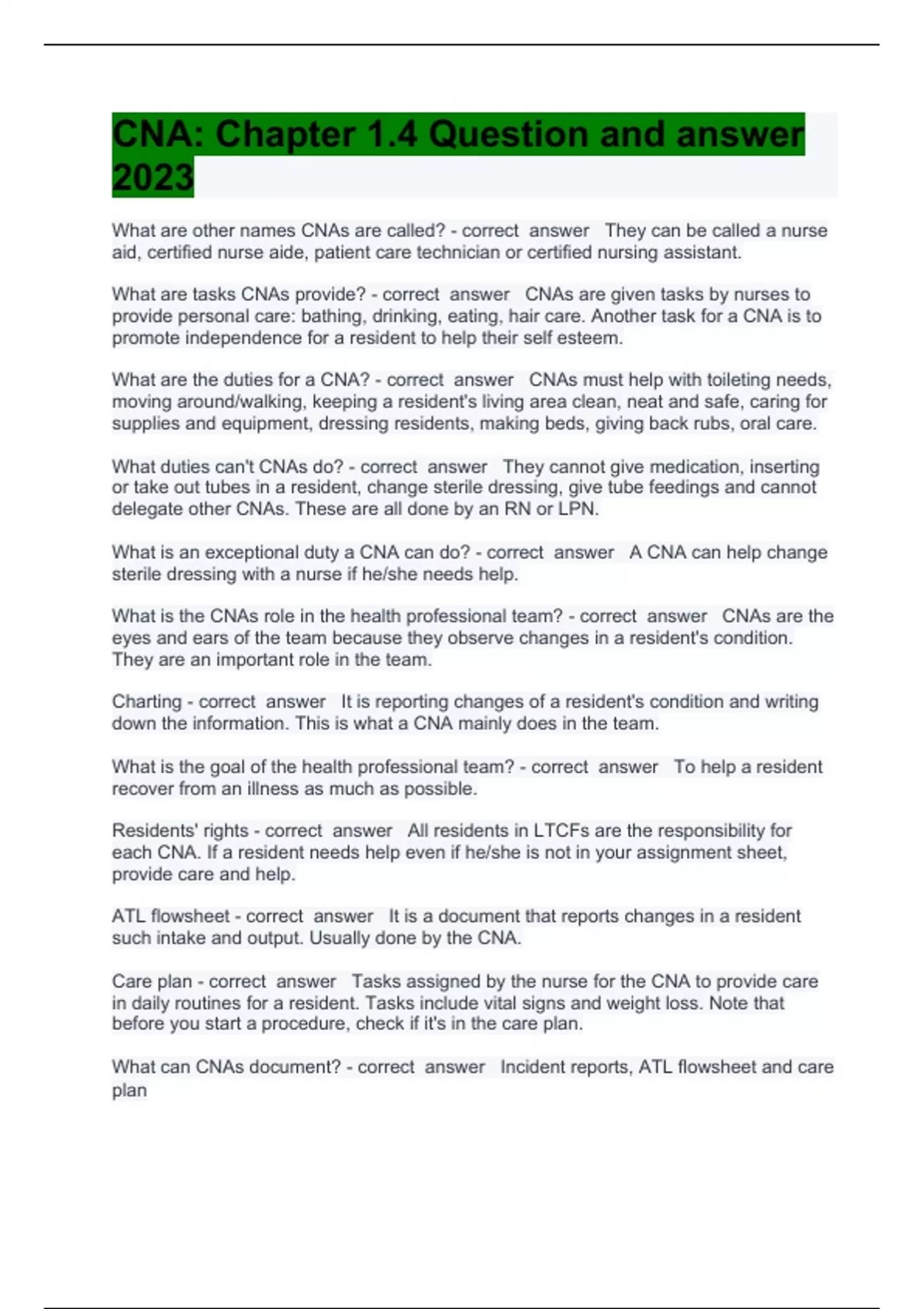 CNA Body Mechanics Questions with complete solution 2023 Exam (elaborations) Cna ch 5 exam Question with complete solution 2023 Exam (elaborations) CNA Chapter 1 and 2 Question and answer rated A+ 2023 Exam (elaborations) CNA Chapter 1 Exam Question and answer 100% correct 2023 Exam (elaborations) Cna chapter 1 Question and answers already