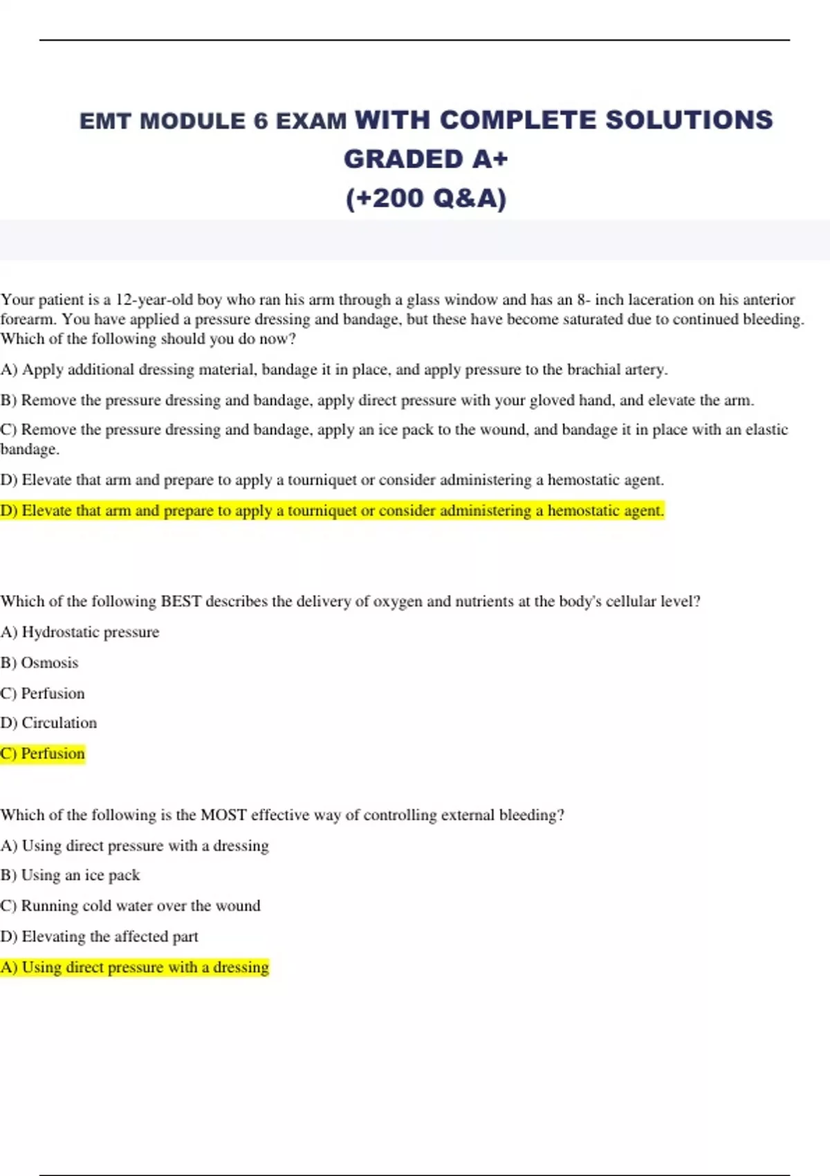 EMT MODULE 6 EXAM WITH COMPLETE SOLUTIONS GRADED A+ (+200 Q&A)