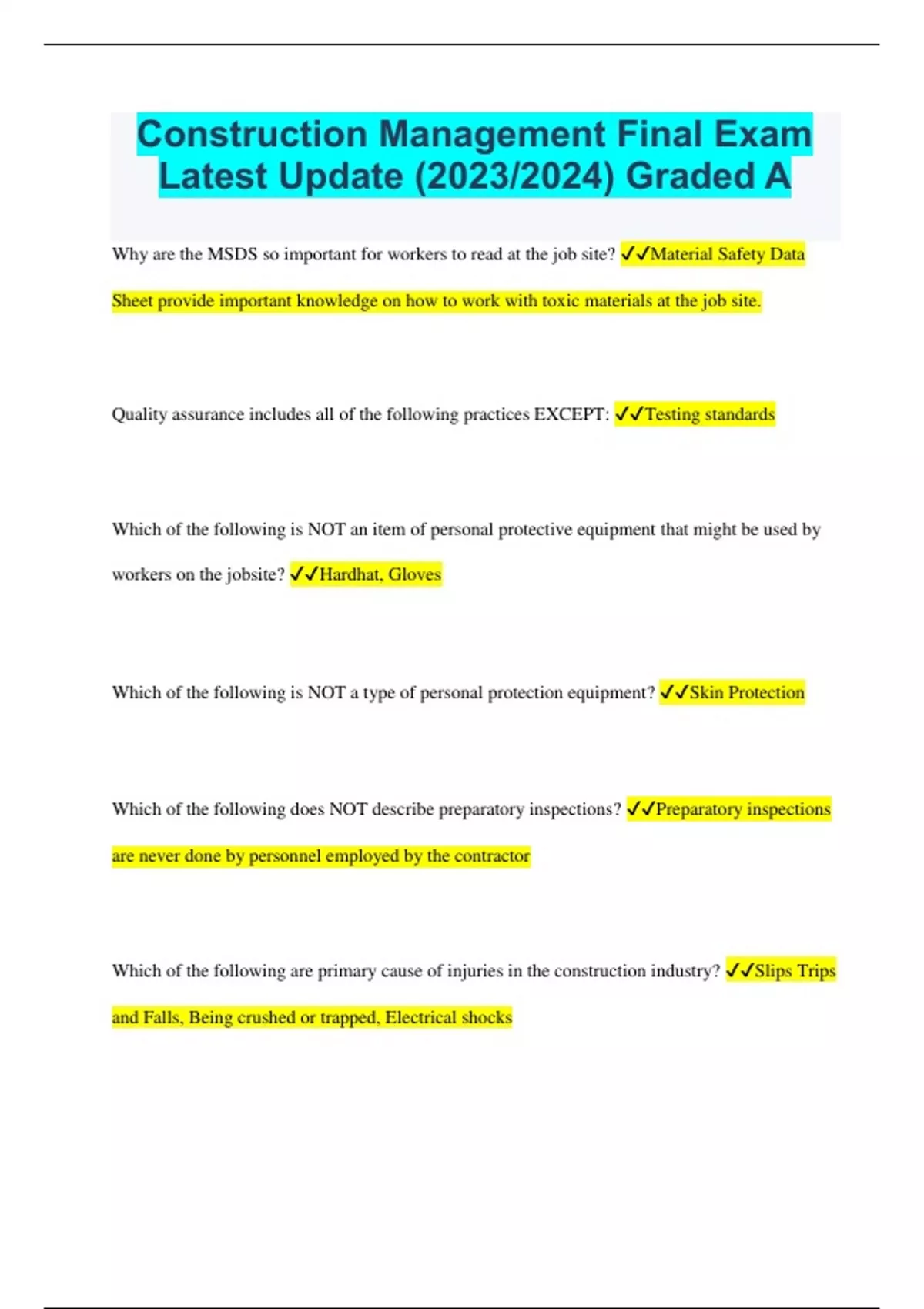 Construction Management Bundled Exams Questions and Answers (2023/2024) All Rated A