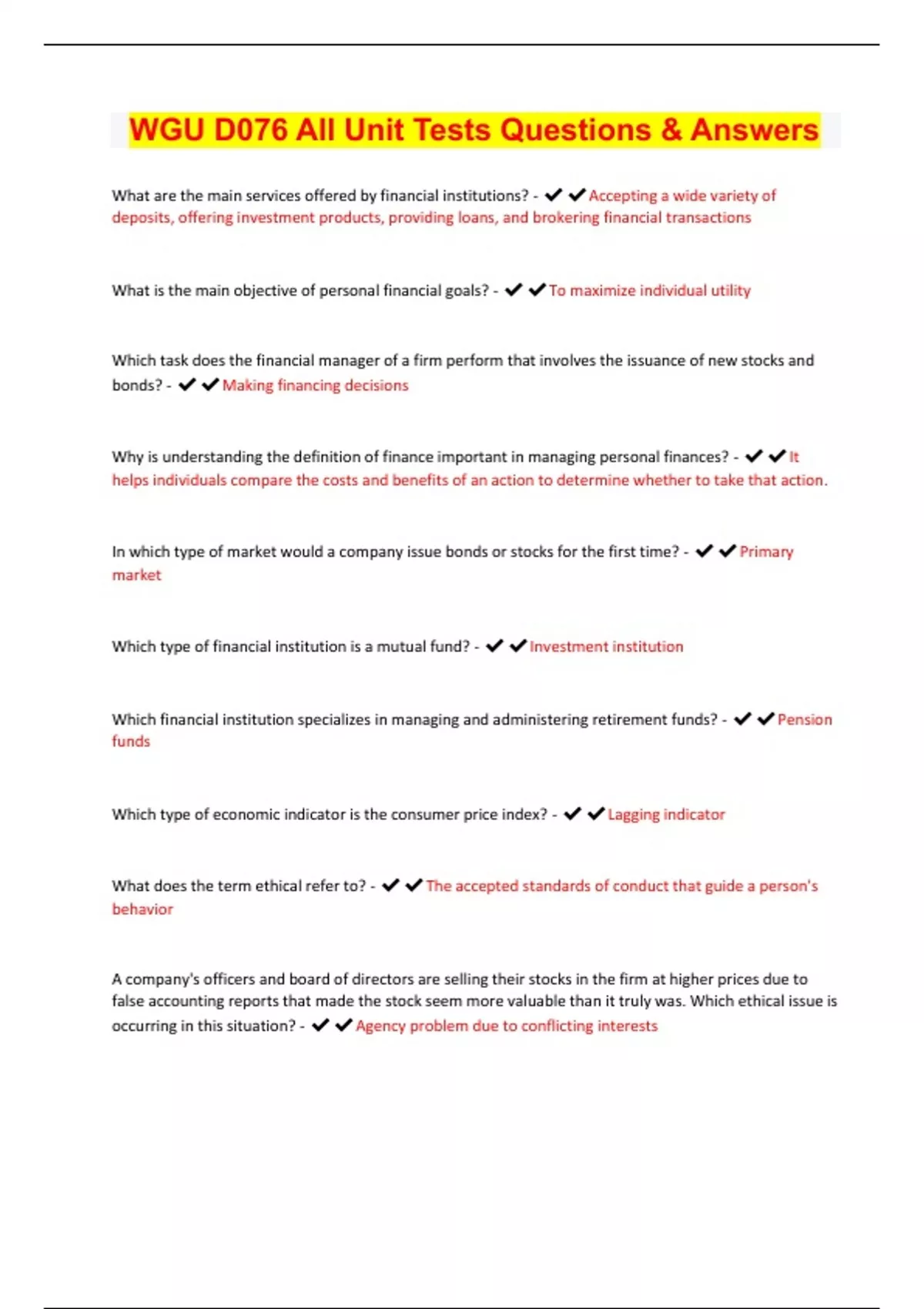 WGU D076 Finance Skills for Managers Test | Latest 2023/24 | Updated & Verified | Guaranteed Success