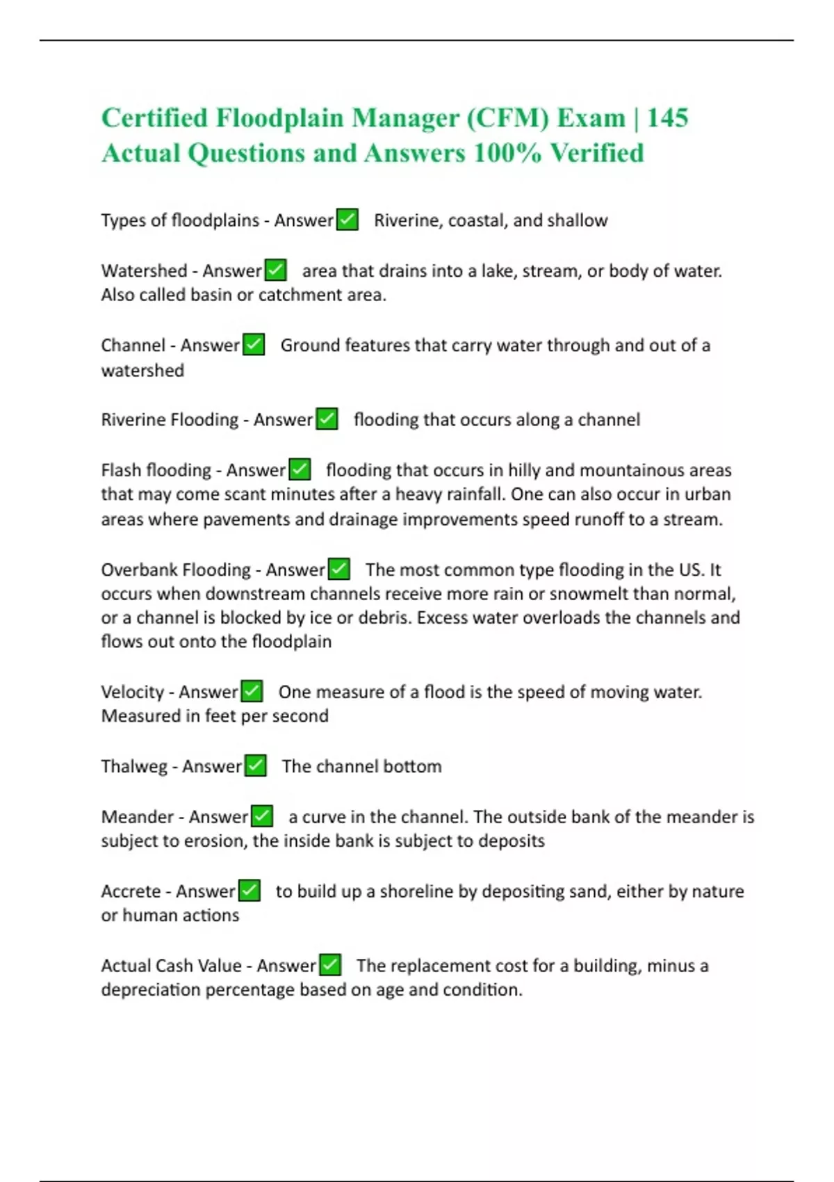 Certified Floodplain Manager (CFM) Exam | 145 Actual Questions and Answers 100% Verified