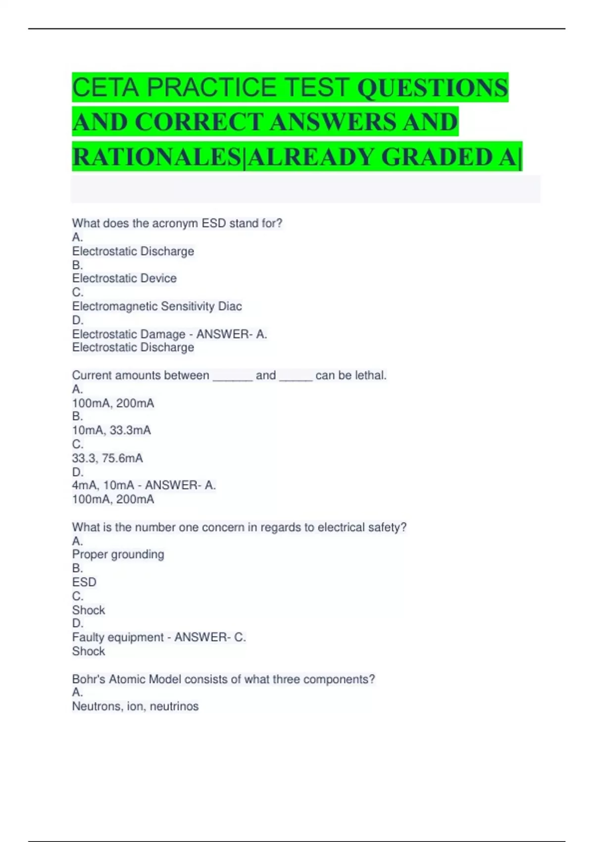 1 Exam (elaborations) CETA PRACTICE TEST QUESTIONS AND CORRECT ANSWERS AND RATIONALES|ALREADY GRADED A| 2 Exam (elaborations) CETA Exam Questions And Answers 3 Exam (elaborations) CETA Study Guide Questions With All Complete Solutions 4 Exam (elaborations) CETA Study Guide Exam Questions With Answers 5 Exam (elaborations) CETA Study Guide Exam