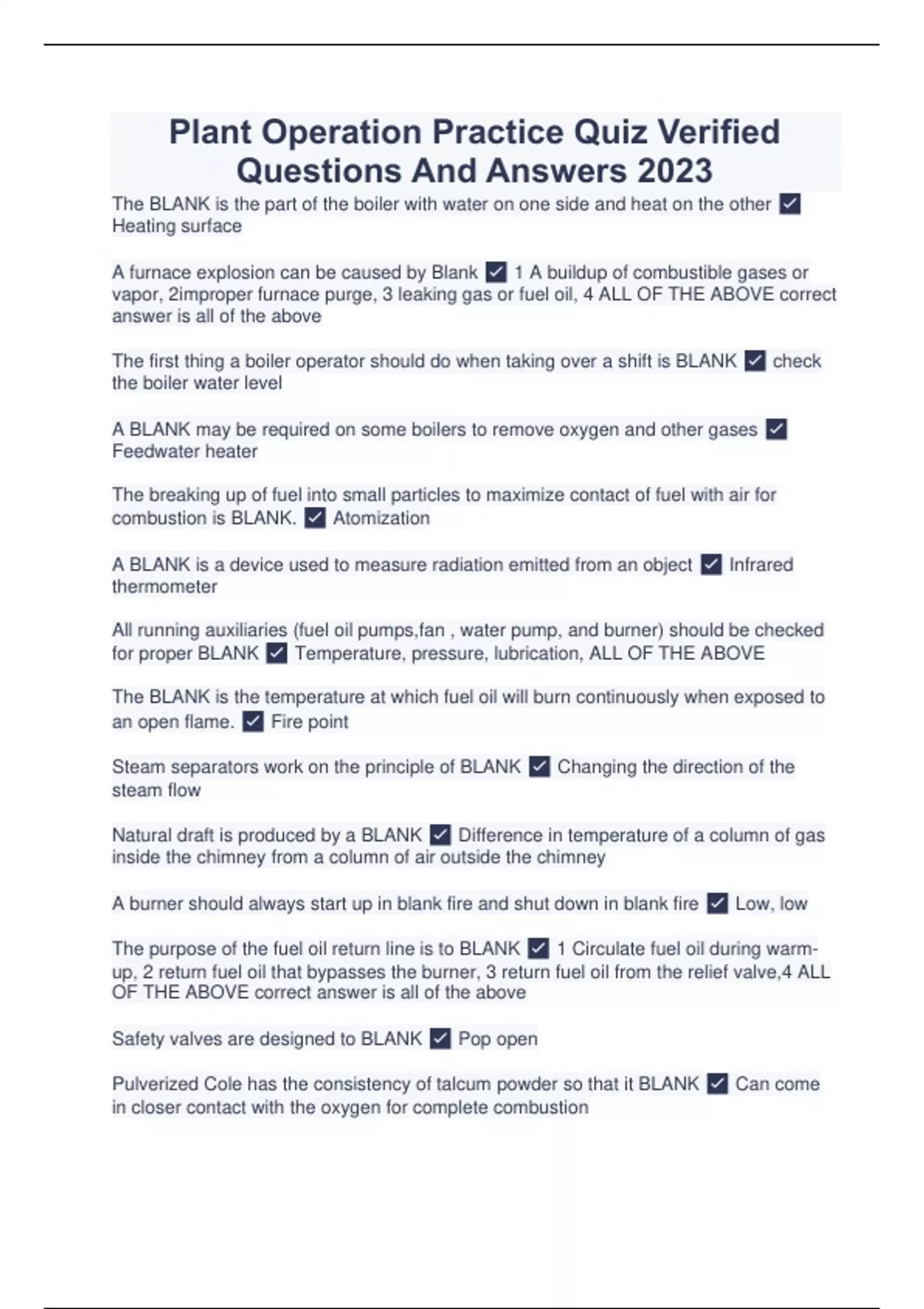 PLANT OPERATOR Verified Solutions With Latest Package 2023 Updates