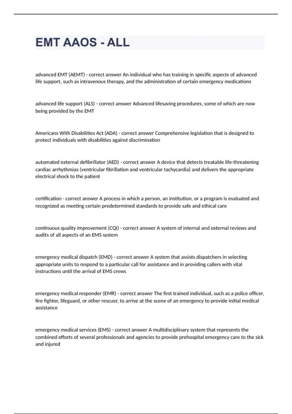 AAOS EMT Chapter 1 - EMS Systems correctly answered to pass