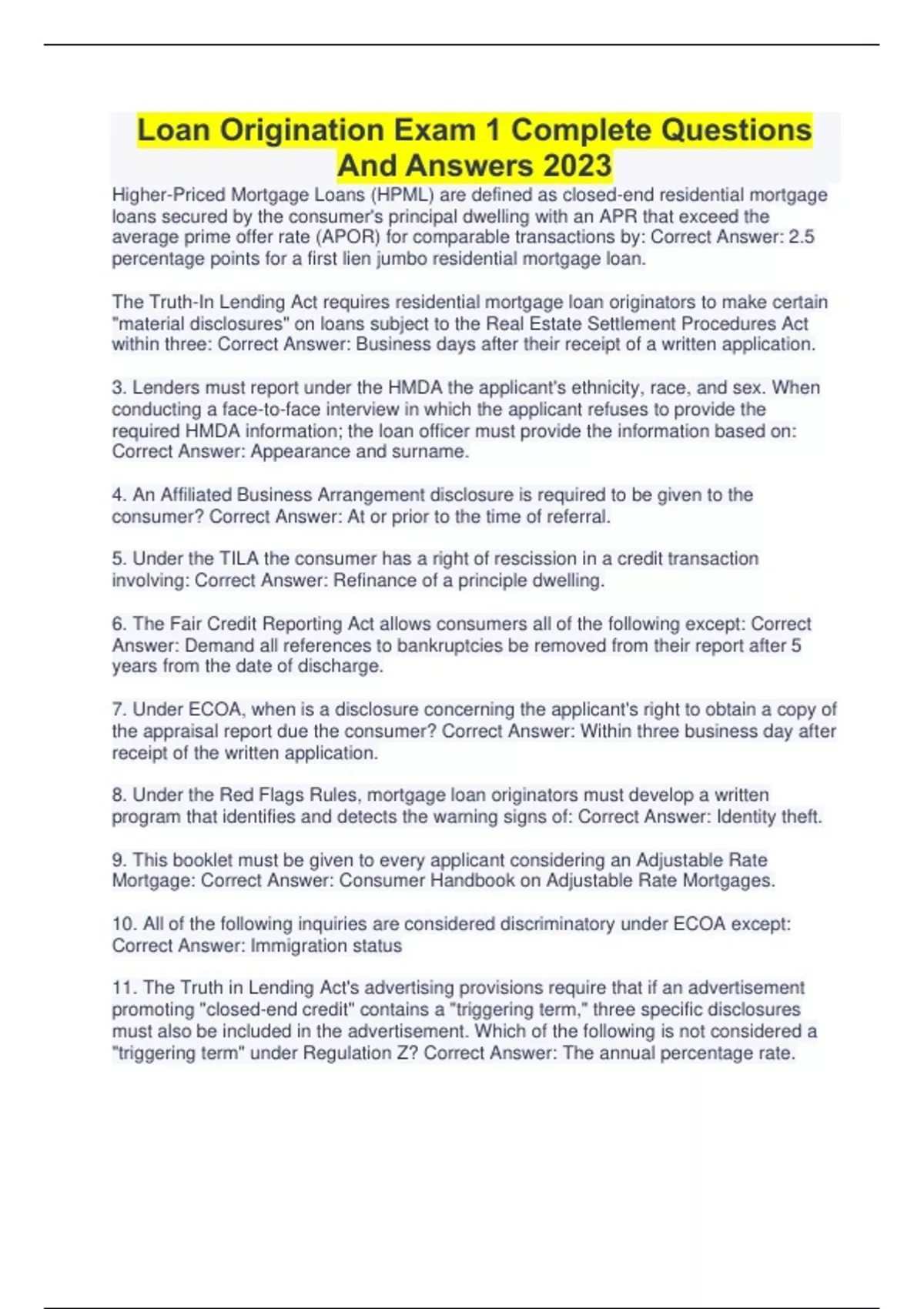 SAFE Mortgage Loan Originator Complete Package With Verified Solutions 2023 SAFE Mortgage Loan Originator Test - National Component With Uniform State Content Latest Updates Mortgage Loan Origination – Compu Cram - Uniform State Content latest quiz 2023 Mortgage Loan Origination - Preschool’s - Final Exam With Latest Questions And Answers
