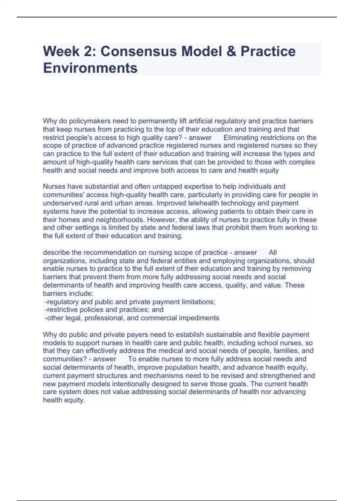 Week 2 Consensus Model & Practice Environments Questions and Answers Rated A+