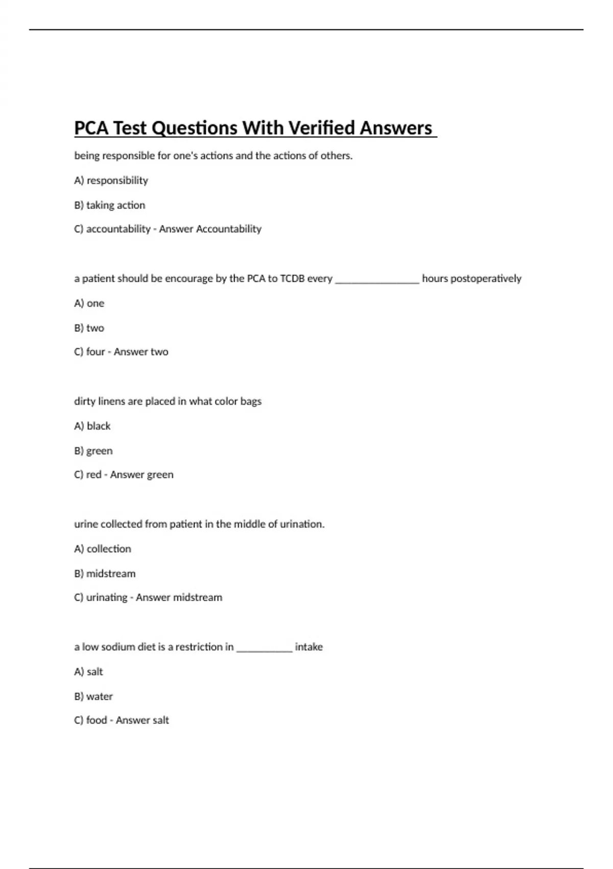 PCA Test, PCA Final Exam, PCA Exam, PCA EXAM 1, PCA Certification Exam, PCA Final Exam Study Set, PCA Exam Questions, PCA Final Exam, HH PCA Exam, PCA Exam Questions & Answers, PCA Final Exam Questions & Answers, PCA TEST QUESTIONS WITH CORRECT ANSWERS