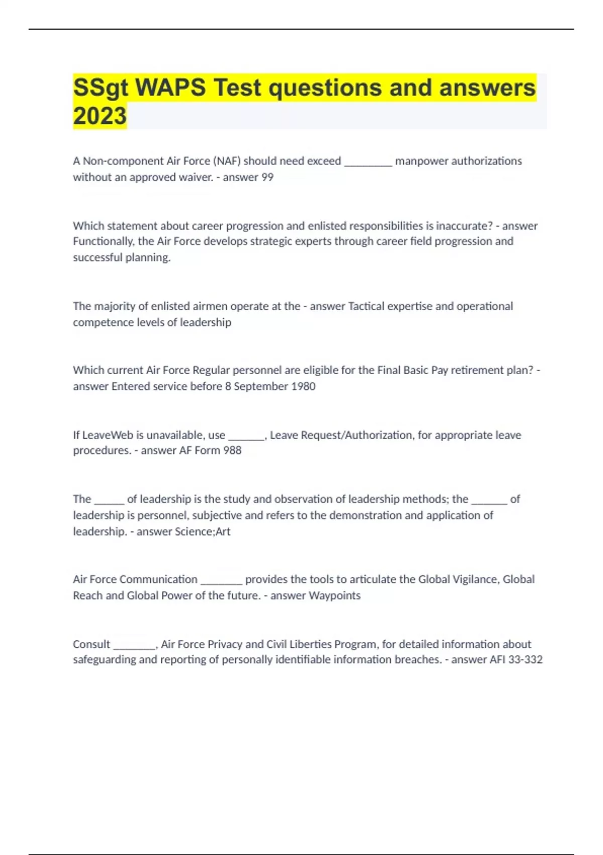 WAPS SSGT BUNDLED EXAMS 2023/24|UPDATED&VERIFIED|GUARANTEED SUCCESS