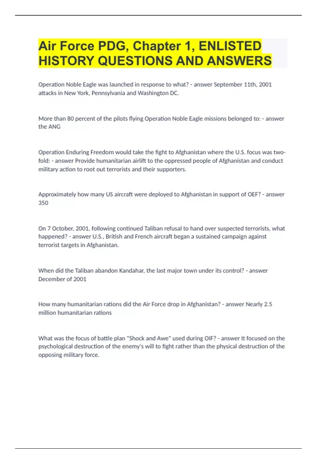 Air Force PDG, Chapter 1, ENLISTED HISTORY QUESTIONS AND ANSWERS