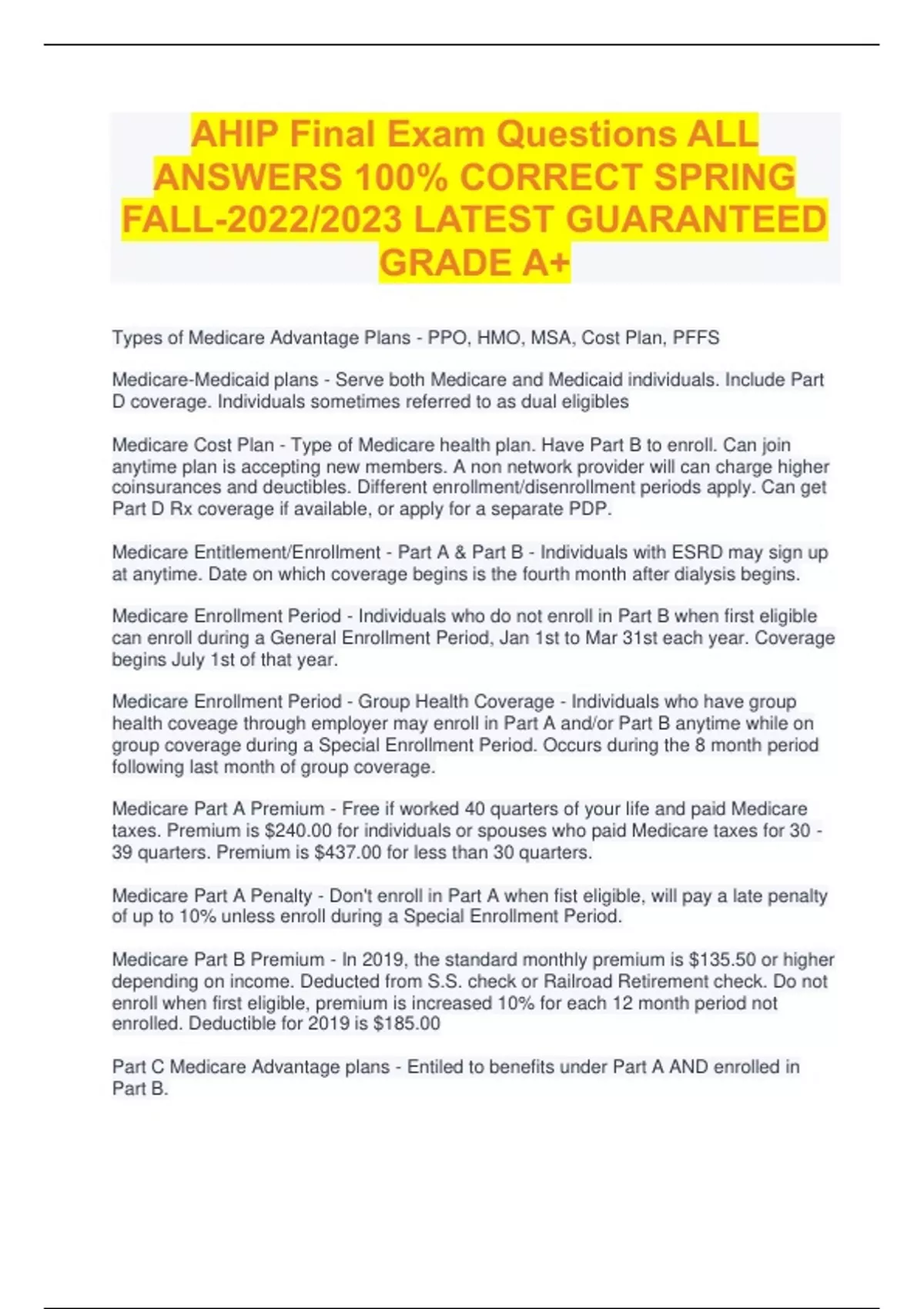 AHIP Bundled Exams with Complete Solution 2023/24 |Already Passed