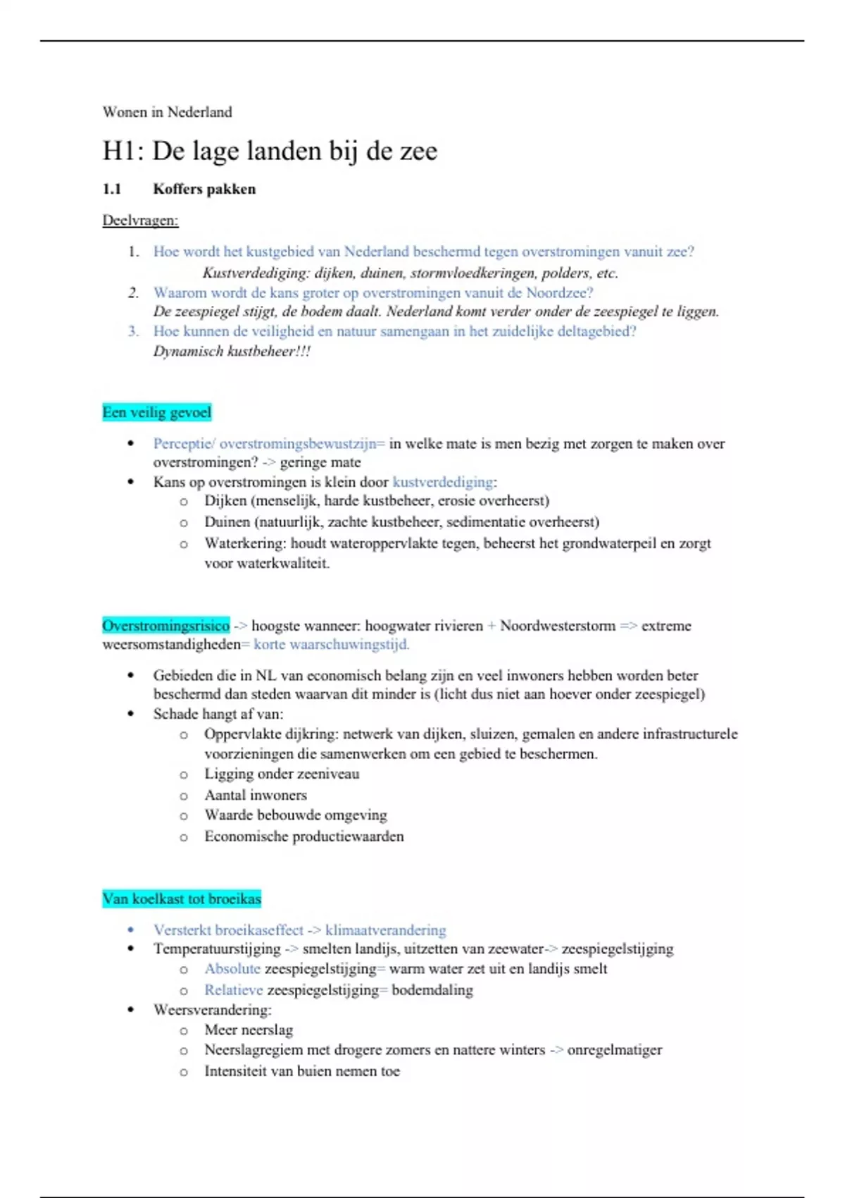 Samenvatting De lage landen bij zee, H1 wonen in Nederland