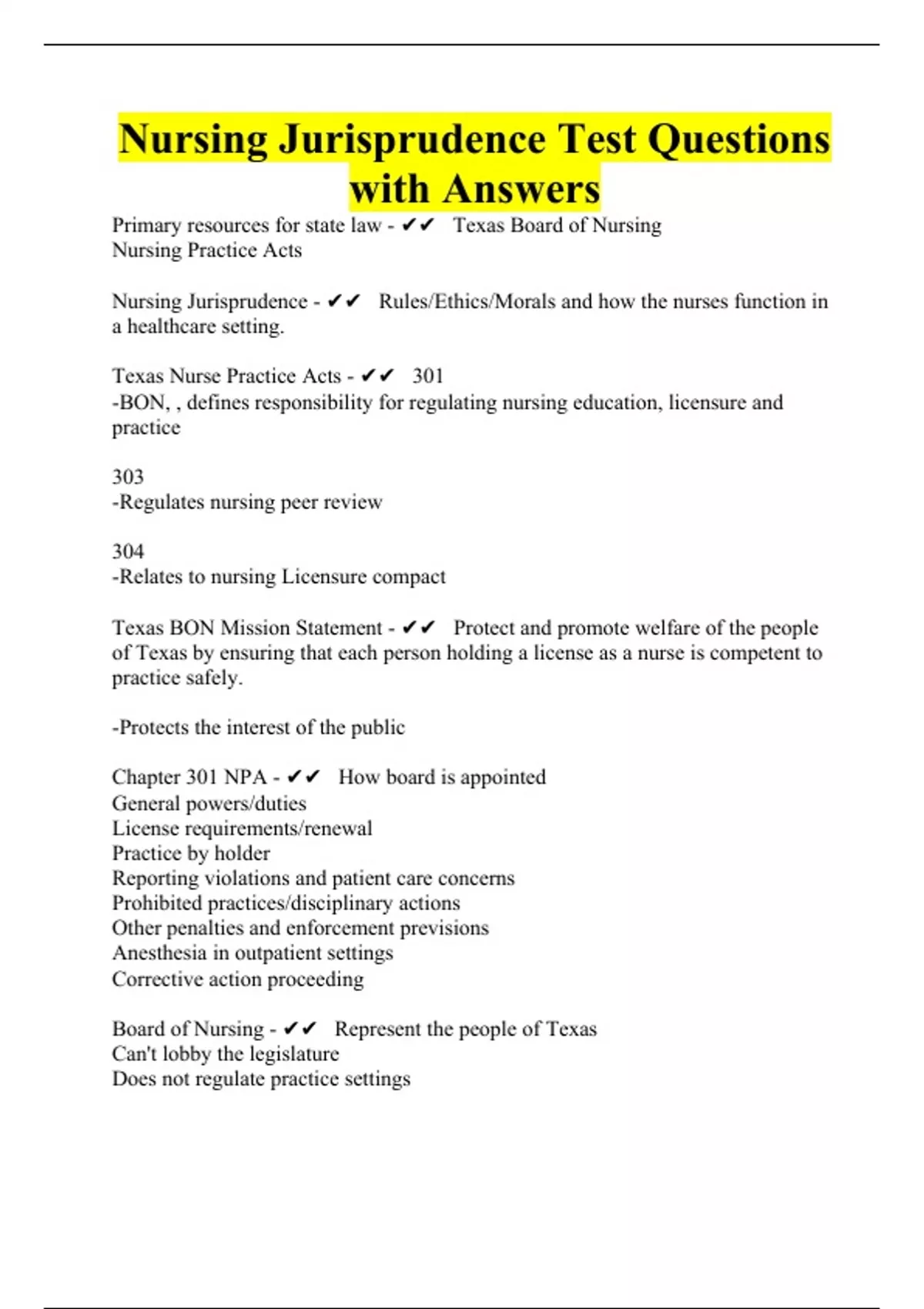 Nursing Jurisprudence Test Exam Bundle
