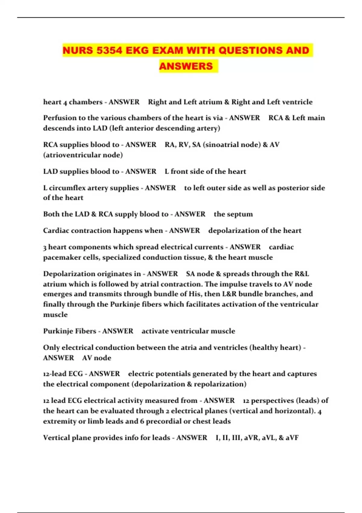 NURS 5354 EKG EXAM WITH QUESTIONS AND ANSWERS