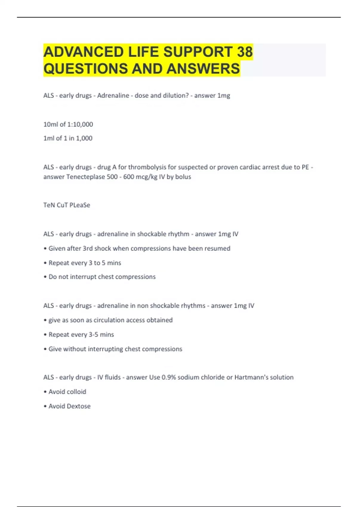 ADVANCED LIFE SUPPORT| 38 QUESTIONS AND ANSWERS