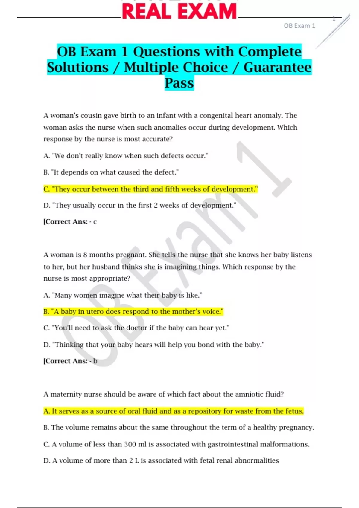 (Complete) OB Exam 1 Questions ;Latest Updates 2023 | All with Verified Answers | Guarantee Pass Guide ,(Complete) OB Exam 1 Questions ;Latest Updates 2023 | All with Verified Answers | Guarantee Pass Guide ,(Complete) OB Exam 1 Questions ;Latest Updates 2023 | All with Verified Answers | Guarantee Pass Guide ,(Complet