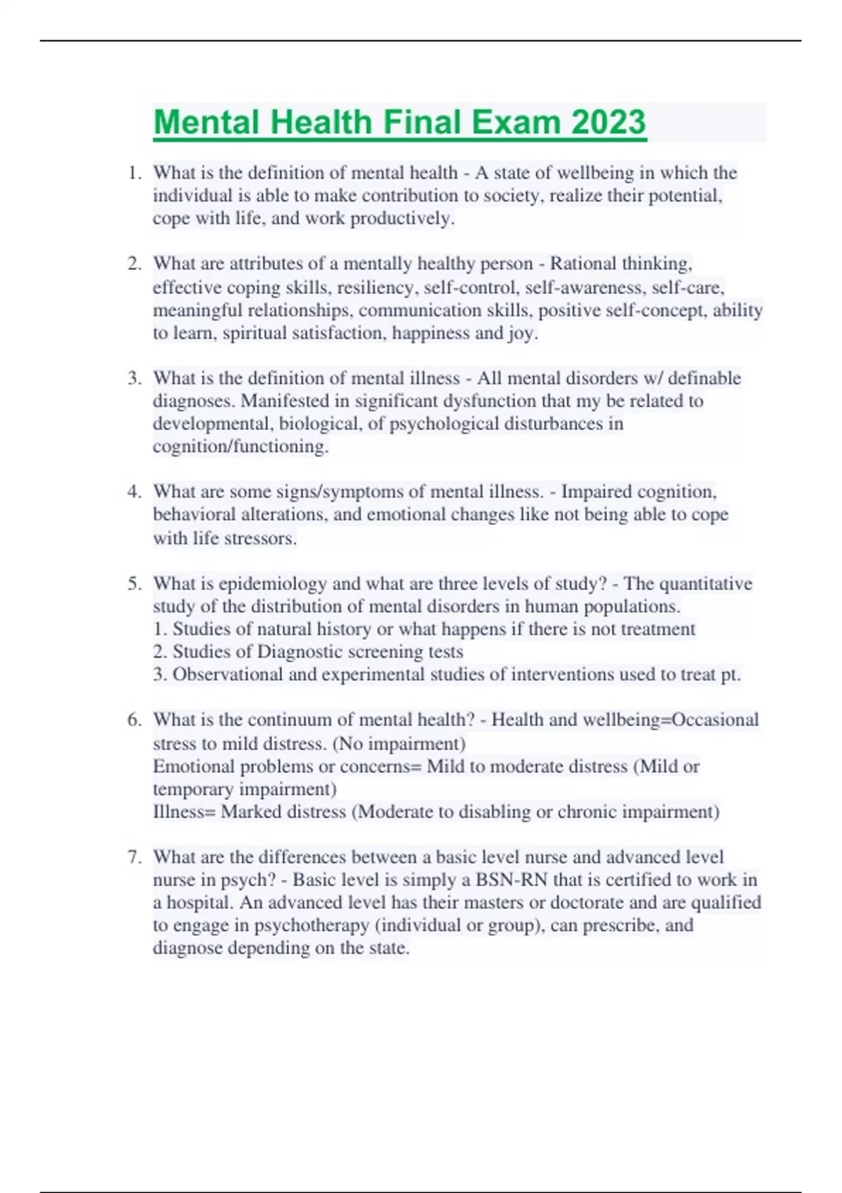 Mental health includes our emotional, psychological, and social well-being. It affects how we think, feel, and act. It also helps determine how we handle stress, relate to others, and make healthy choices.