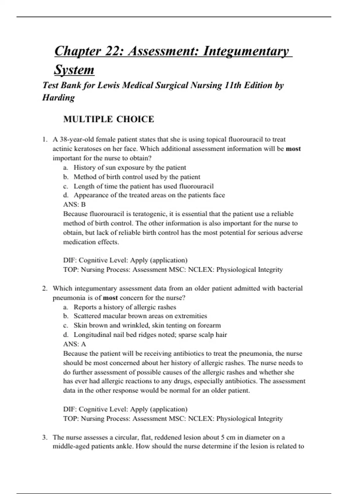 TEST BANK FOR LEWIS MEDICAL SURGICAL NURSING 11TH EDITION BY HARDING (CHAPTERS 21-30)