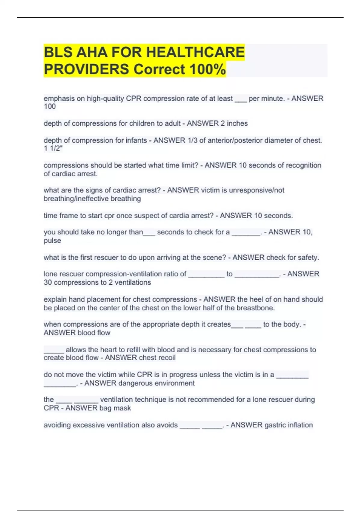 PACKAGE DEAL FOR AHA BLS exam 2023 Correct Questions & Answers(Latest Update)(FULL SOLUTION PACK)PACKAGE DEAL FOR AHA BLS exam 2023 Correct Questions & Answers(Latest Update)(FULL SOLUTION PACK)PACKAGE DEAL FOR AHA BLS exam 2023 Correct Questions & Answers(Latest Update)(FULL SOLUTION PACK)