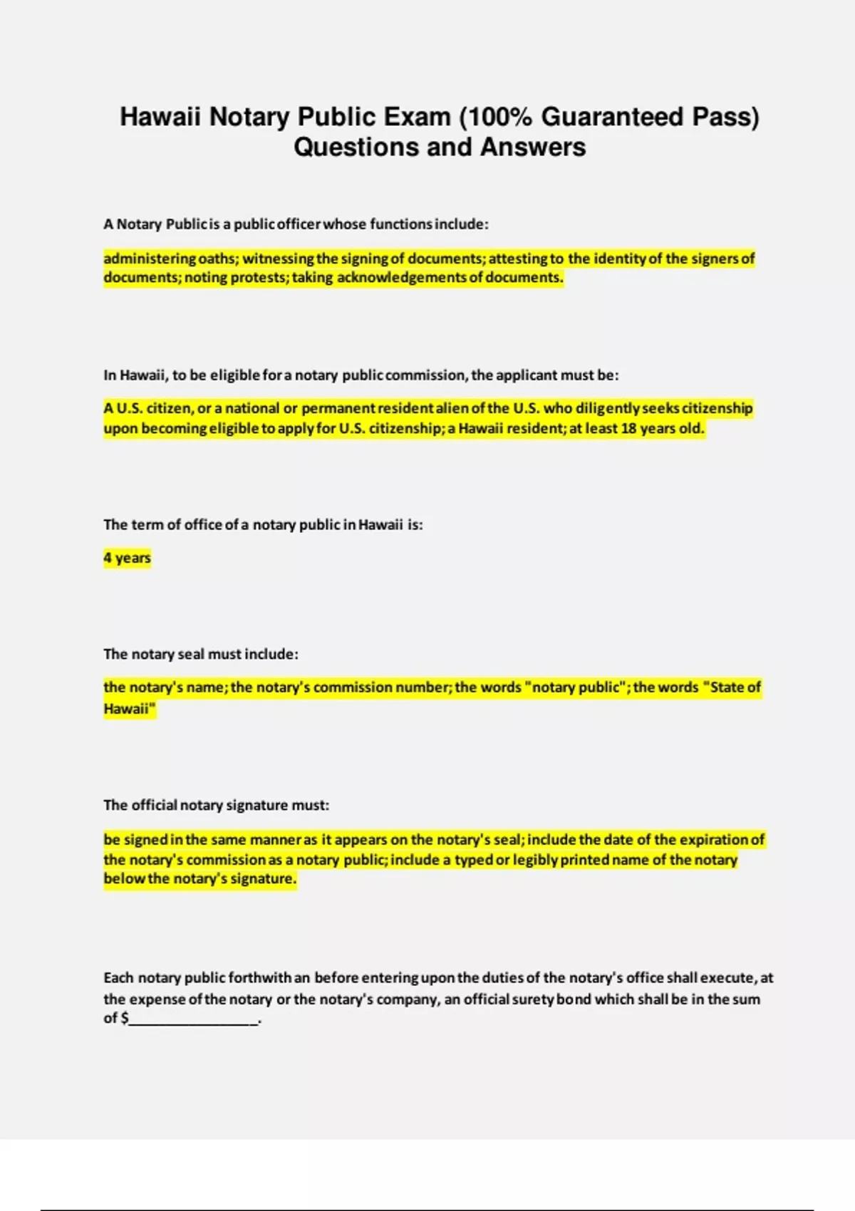 Hawaii notary tests compilation Exams and Study Guides (PACKAGE DEAL)