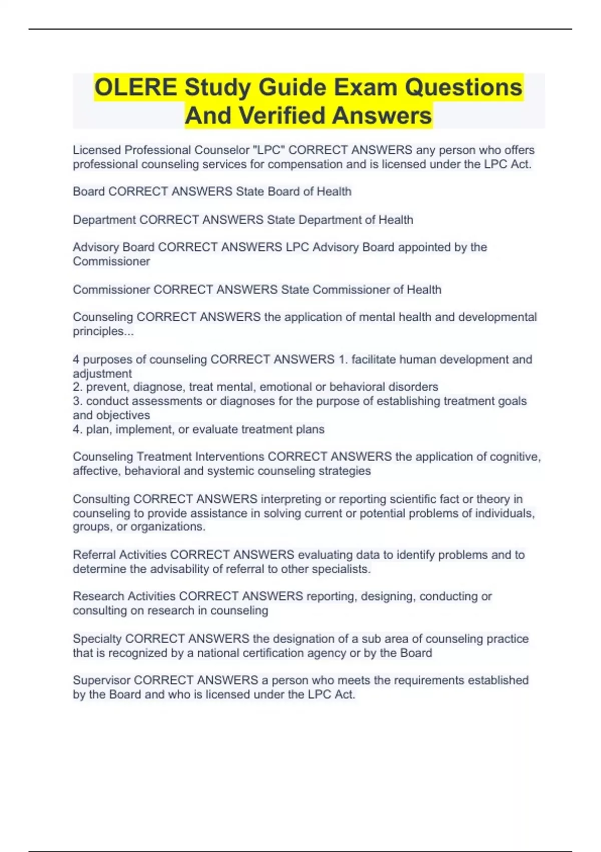 OLERE Study Guide Exam Questions And Verified Answers OLERE (Oklahoma Legal and Ethical Responsibilities Exam) Complete Questions And Answers OLERE EXAM QUESTIONS AND VERIFIED SOLUTIONS (100% CORRECT)
