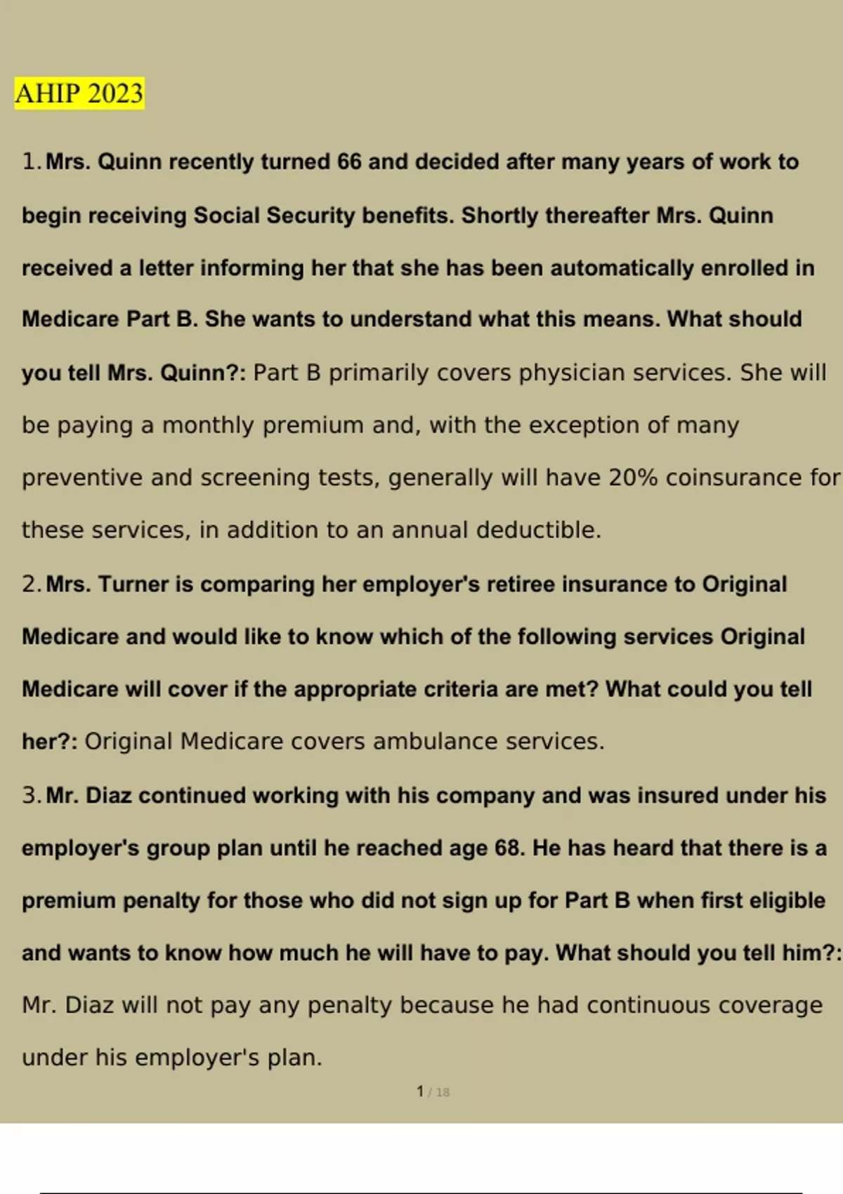 AHIP - 3 Questions and Answers Latest (2023 / 2024) (Verified Answers)