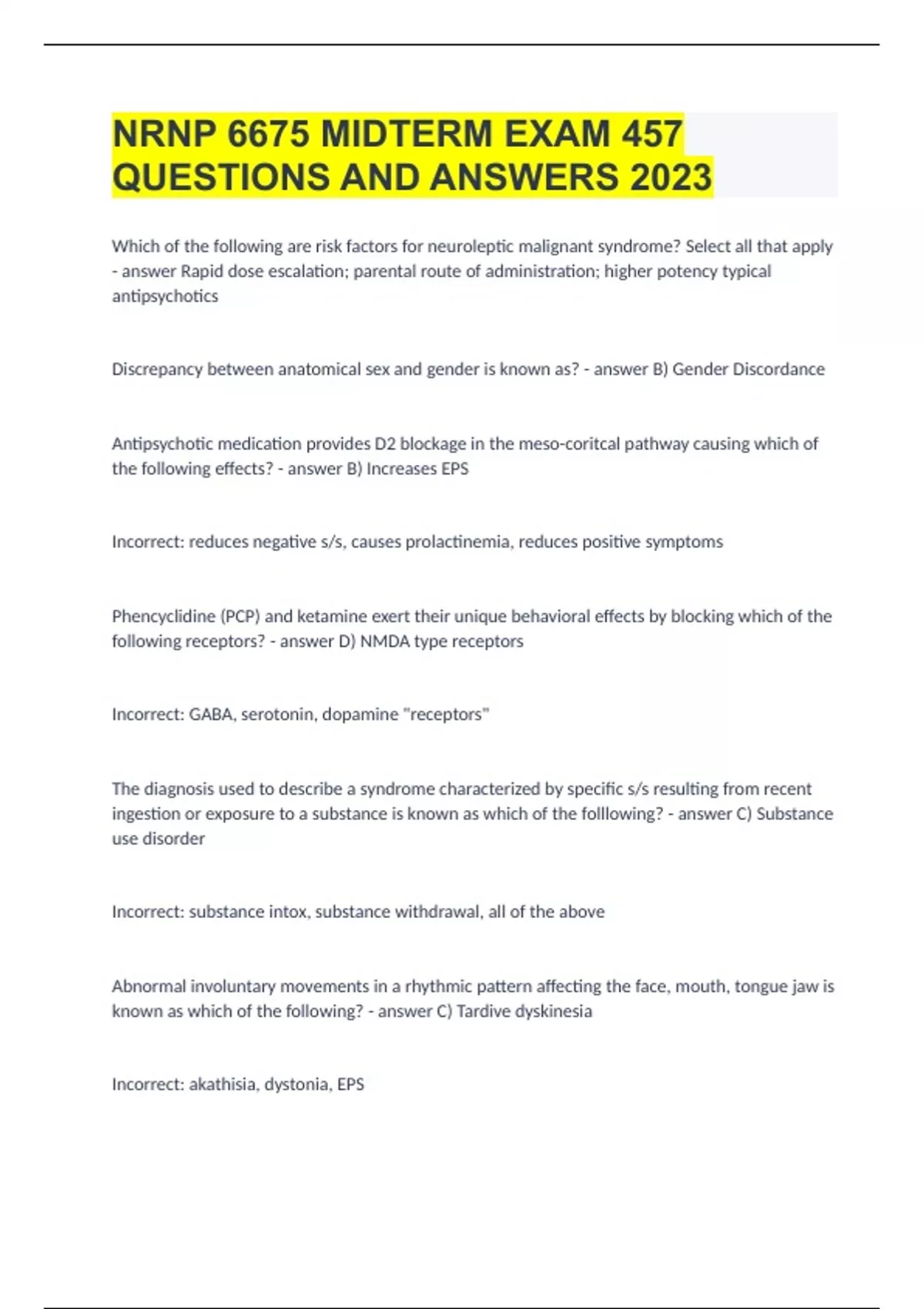 NRNP 6675 MIDTERM EXAM| 457 QUESTIONS WITH 100% CORRECT ANSWERS ALREADY GRADED A+