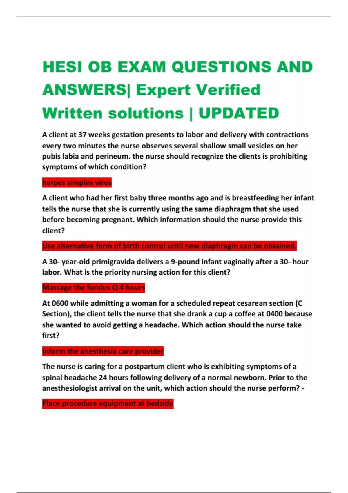 HESI OB MATERNAL EXAM TESTS COMBINED