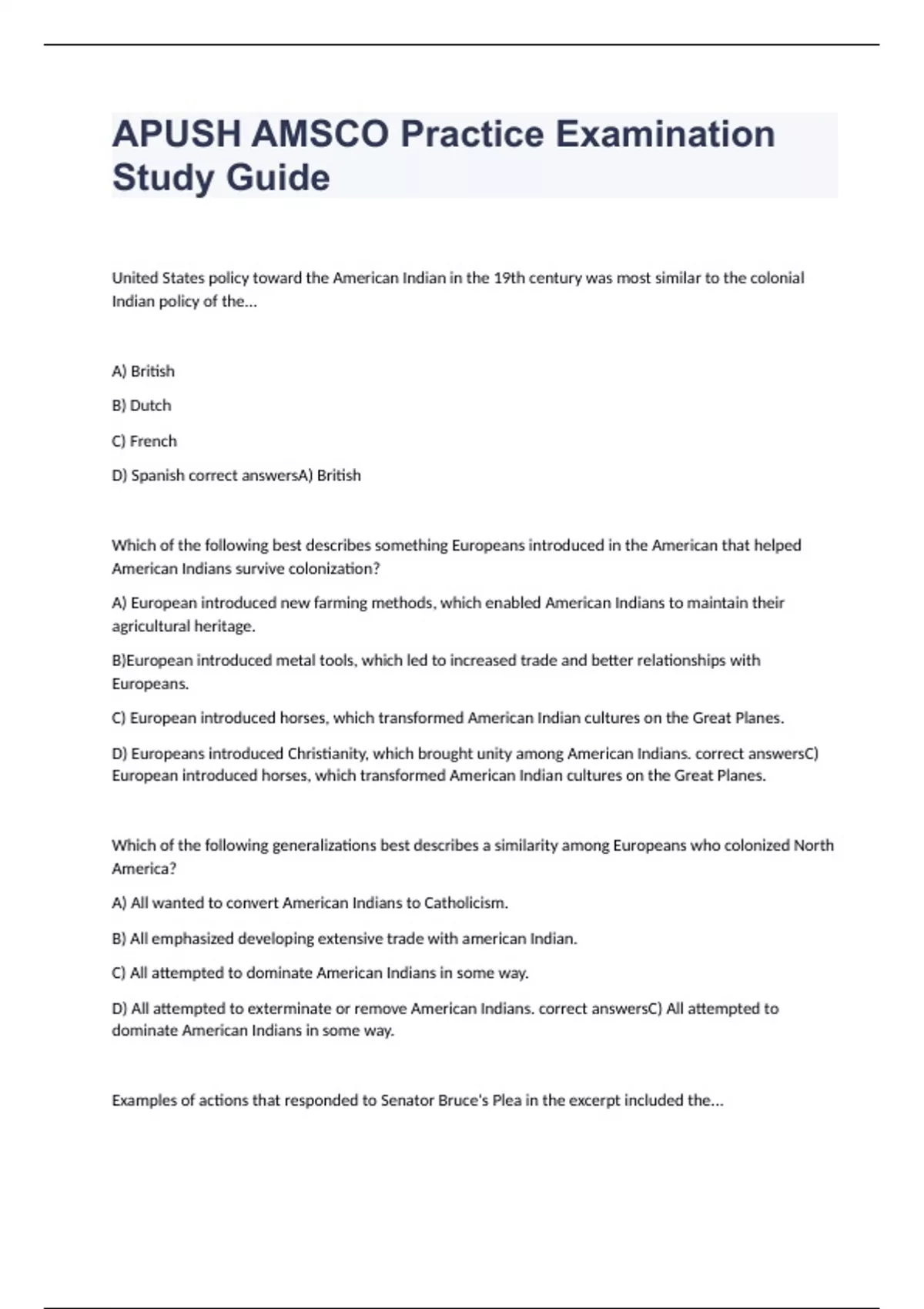 AMSCO--All Period APUSH review exam 2023 with 100% correct answers AMSCO AP US History Chapter 1-3 exam 2023 with 100% correct answers