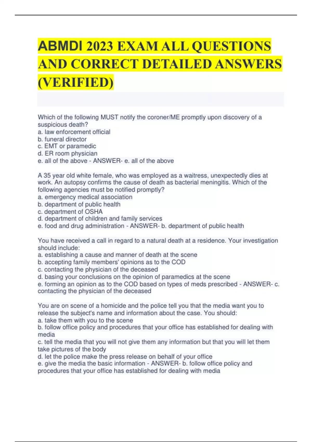 bundle for ABMDI-D ACTUAL EXAM QUESTIONS WITH ANSWERS