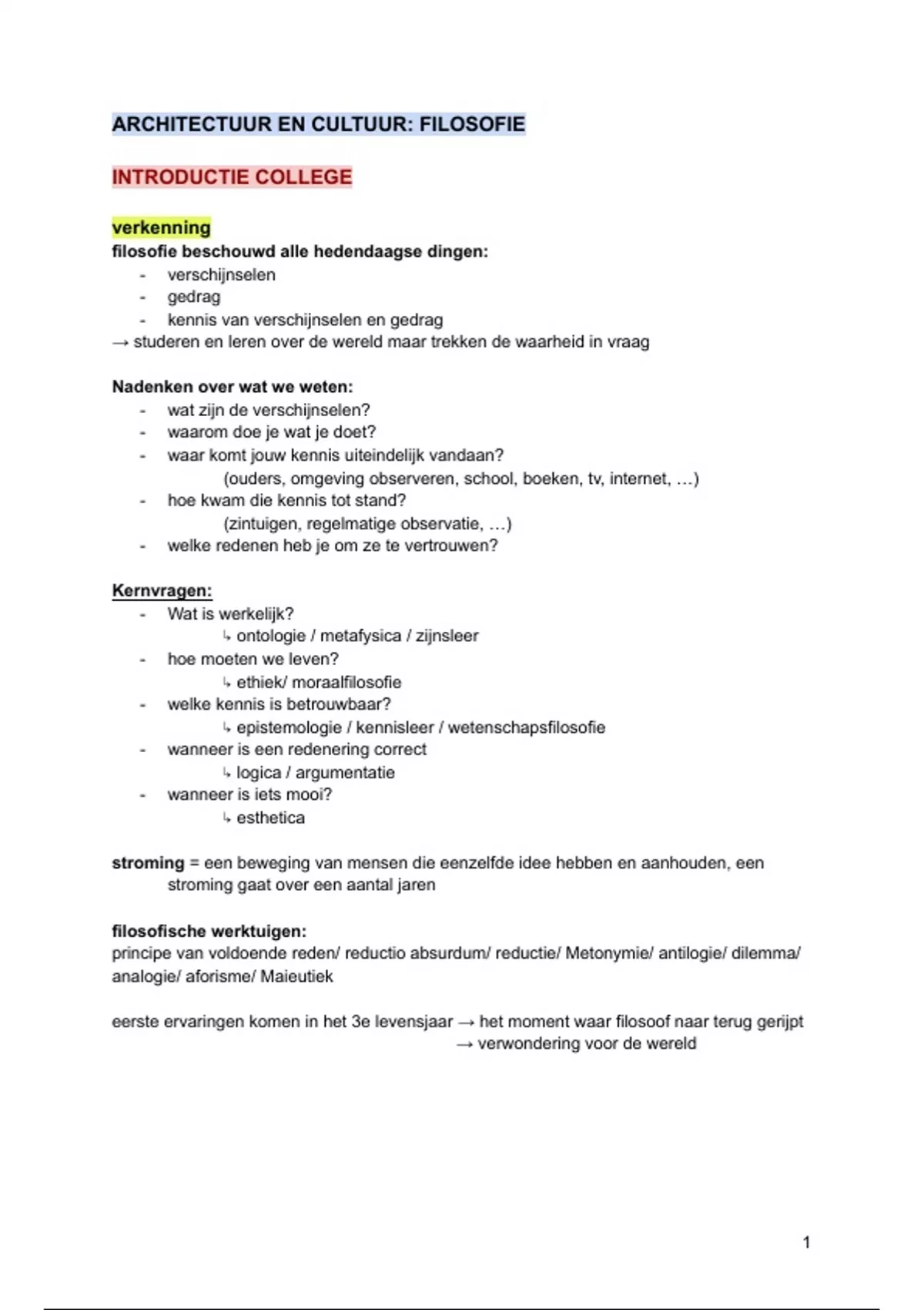 een uitgebreide samenvatting van de lessen en kaartjes van alle te kennen filosofen - docent Gustaaf Cornelis