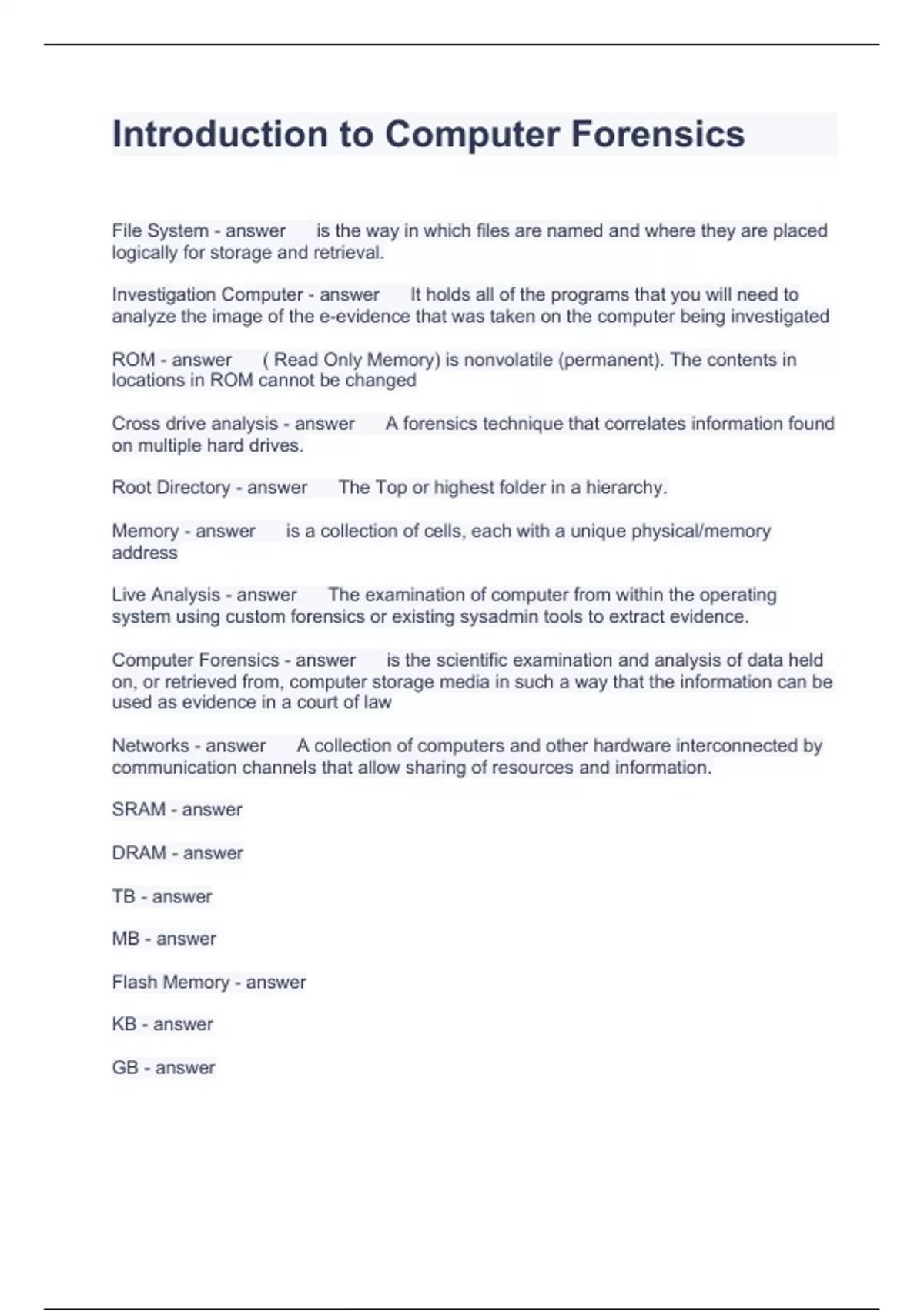 Exam (elaborations) Computer forensic 1 Questions and Answers 2023 Exam (elaborations) Computer forensic1 Questions and Answers Scored A+ Exam (elaborations) Computer Forensic2 Questions with Accurate Answers 2023 Exam (elaborations) Computer Forensic3 Questions with Accurate Answers 2023 Exam (elaborations) Computer Forensics and Investig