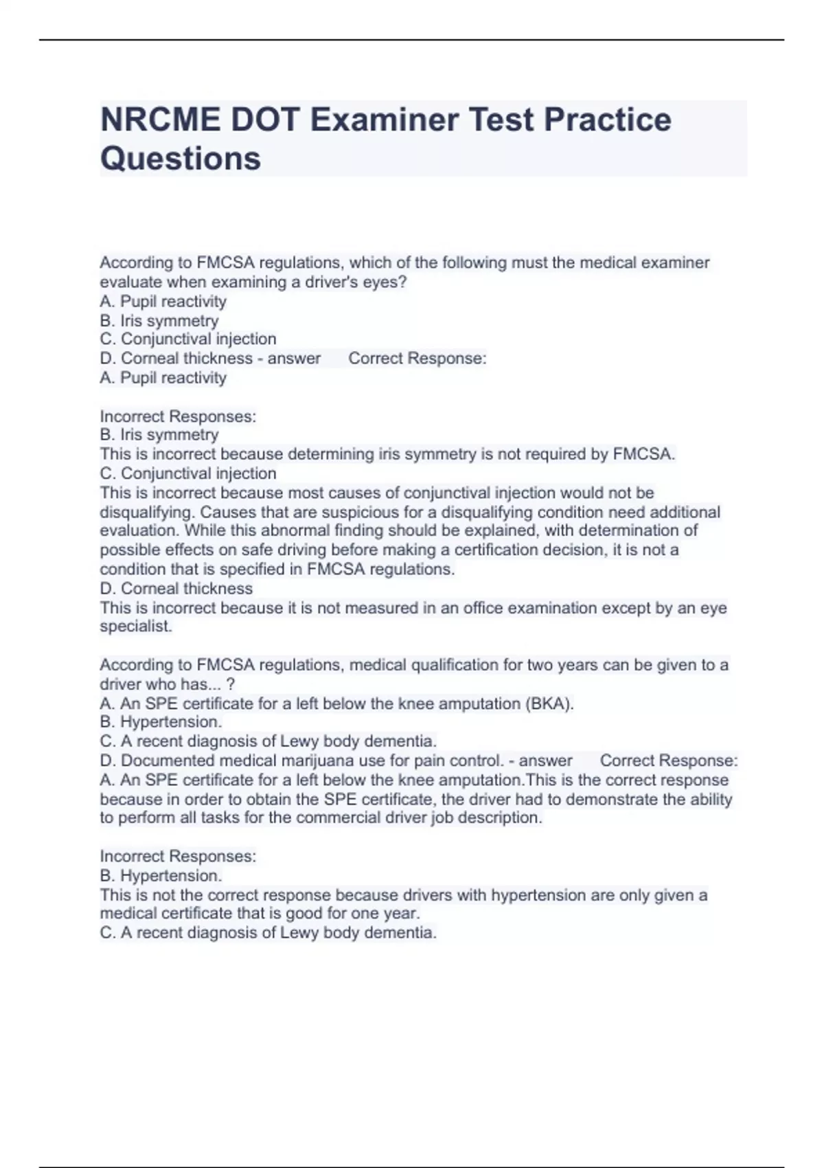 Exam (elaborations) 2023 DOT Respiratory Questions with correct Answers 2023 Exam (elaborations) DOT (Department of Transportation) Questions and Answers 100% Accurate 2023 Exam (elaborations) DOT Certification Exam (FMCSA) Questions with Accurate Answers 2023 Exam (elaborations) DOT Certification exam 2 Questions with solutions 2023 Exam