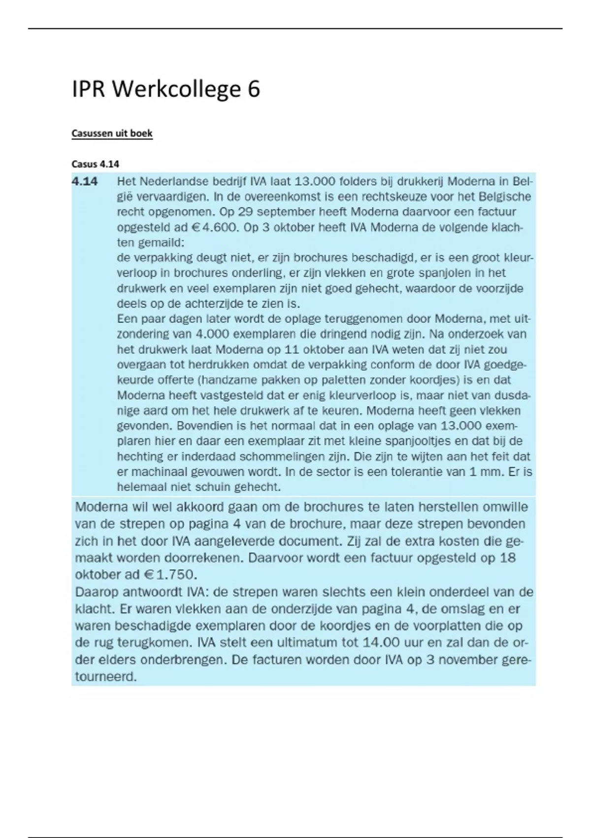 Alle uitwerkingen van elk werkcollege (1 t/m 7) ! BESPAAR €8 MET DEZE BUNDEL ! Casussen die we op het tentamen kunnen verwachten zijn roze gemarkeerd.