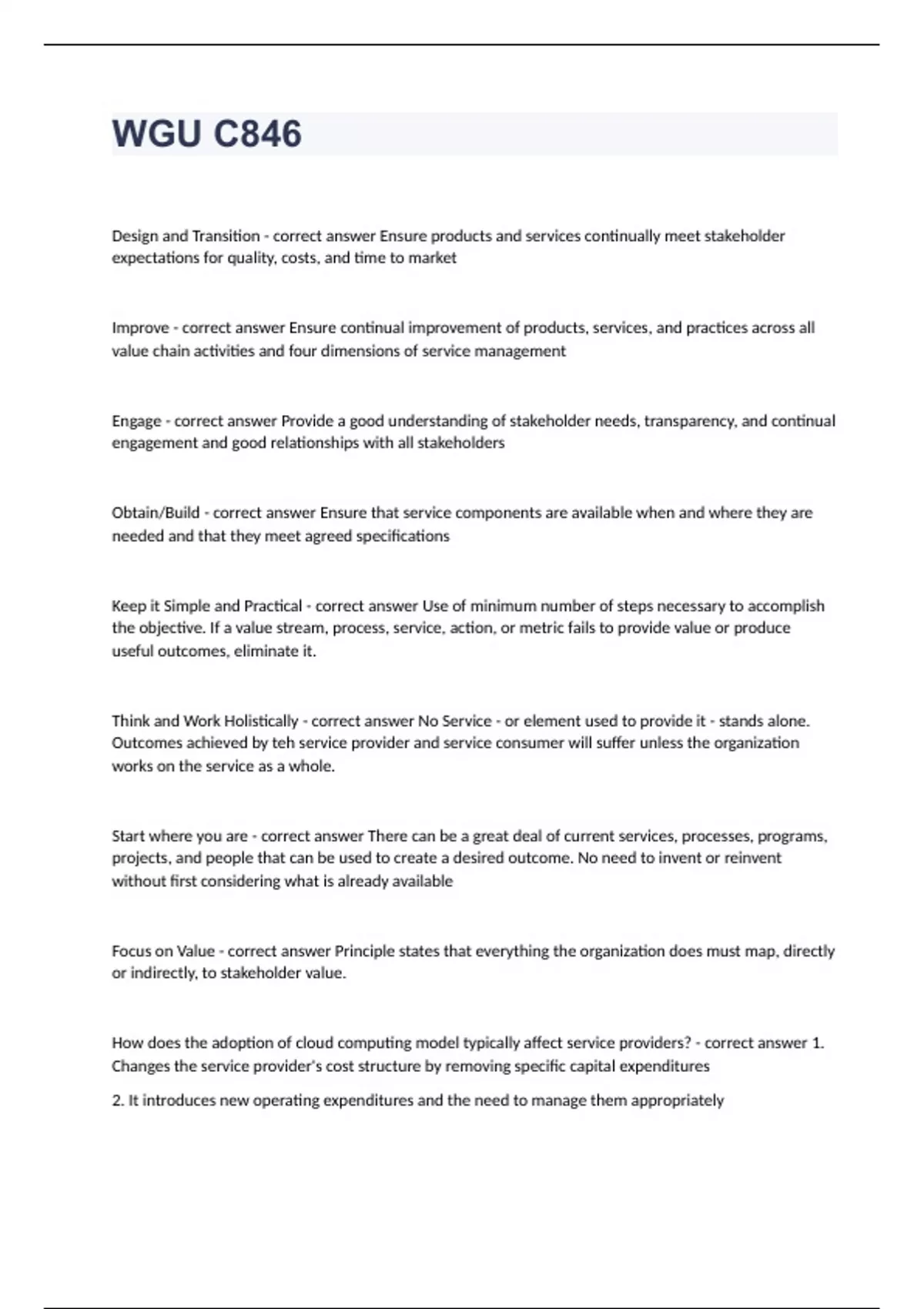 1 Exam (elaborations) C846 Flash Cards from Ucertify, WGU C846 ITIL, Business of IT 2023/2024 2 Exam (elaborations) ITIL 4 WGU C846 - the 4 dimensions (worth 2 points) and The Service Value System (worth 5 points 2023/2024 verified to pass 3 Exam (elaborations) ITIL WGU C846 questions and answers 2023/2024 4 Exam (elaborations) ITIL4 Foundations