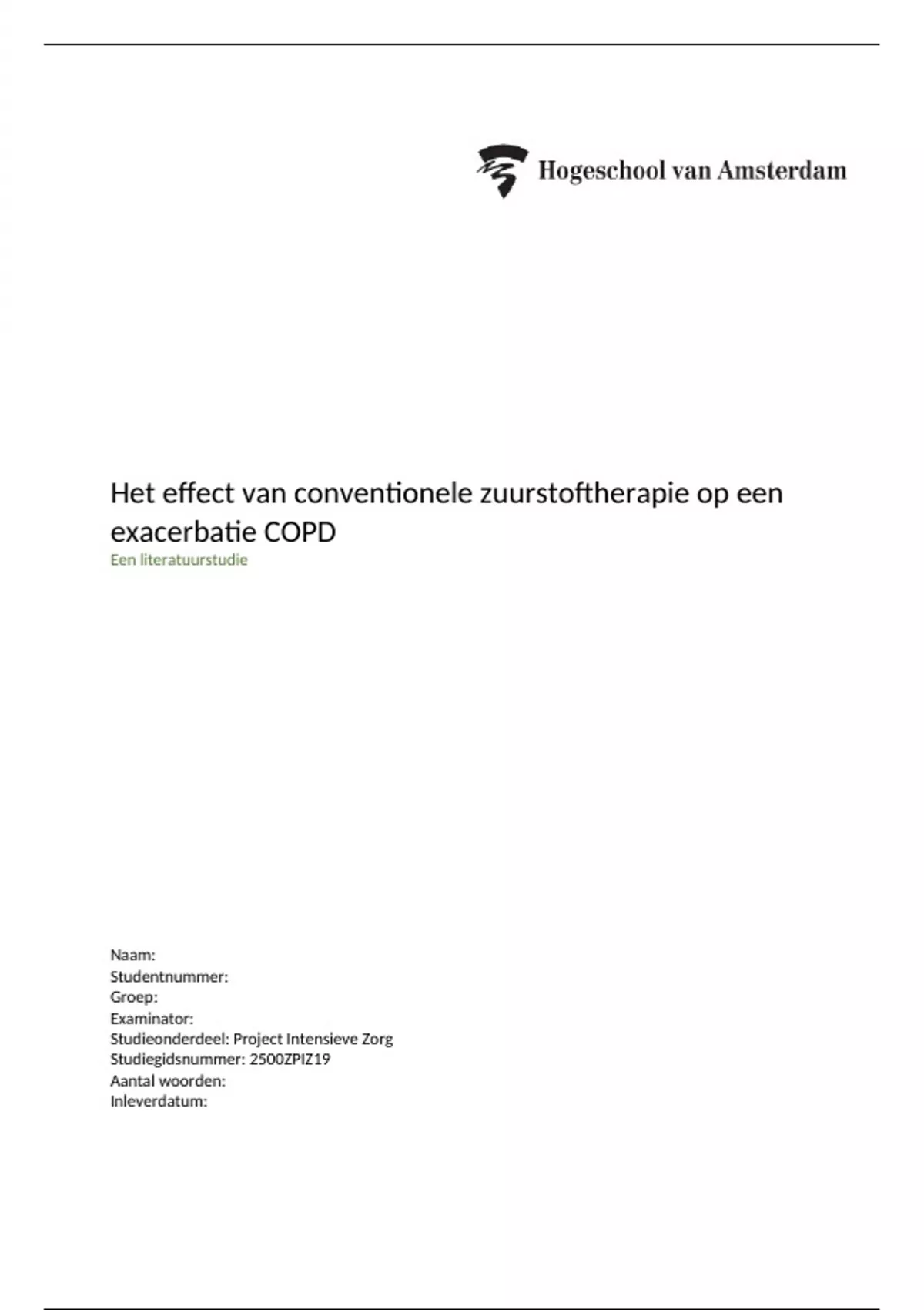 Literatuurstudie Project Intensieve Zorg (2500VZ2_22)