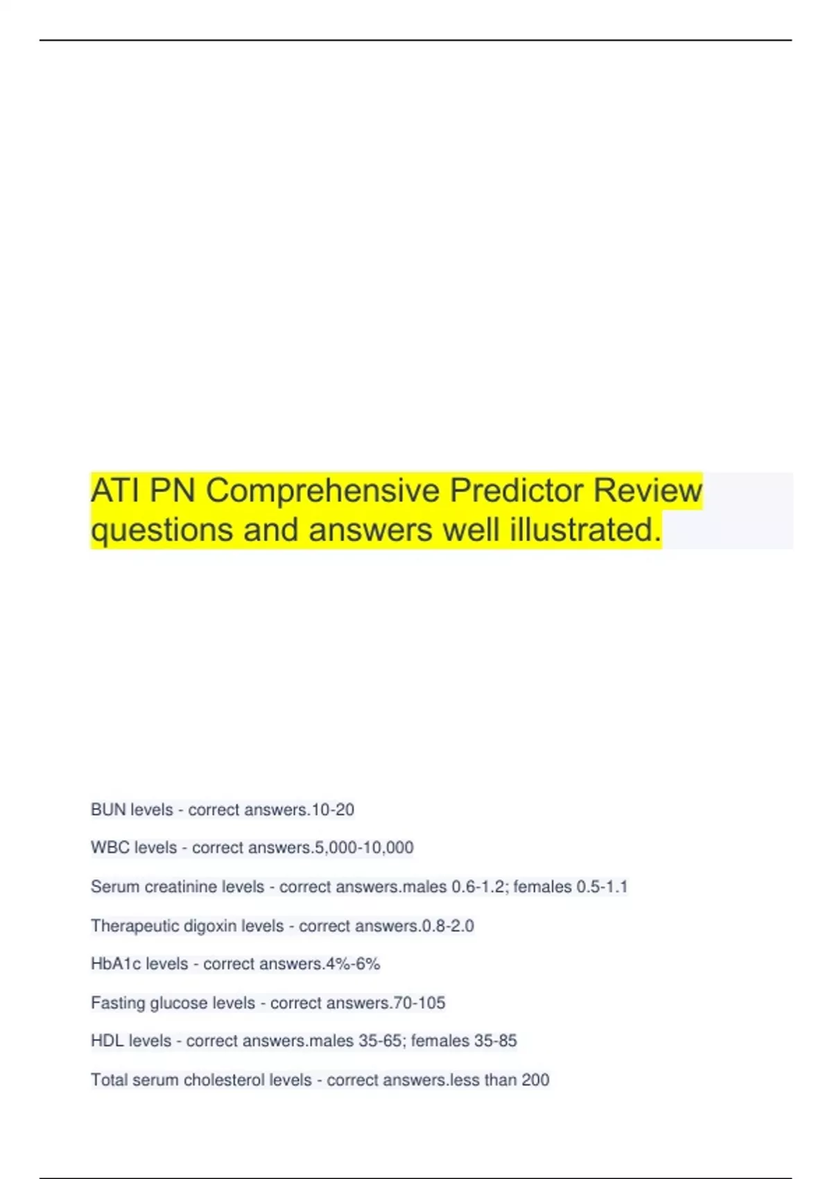 ATI Comprehensive Predictor 2020 questions and answers latest top score.ATI PN Comprehensive Test 2017 questions and answers 100% verified.Predictor Exam - PN/LVN questions and answers well illustrated.Comprehensive predictor Test A questions and answers 100% guaranteed success.ATI comprehensive predictor STUDY THIS ONE questions and answers well i