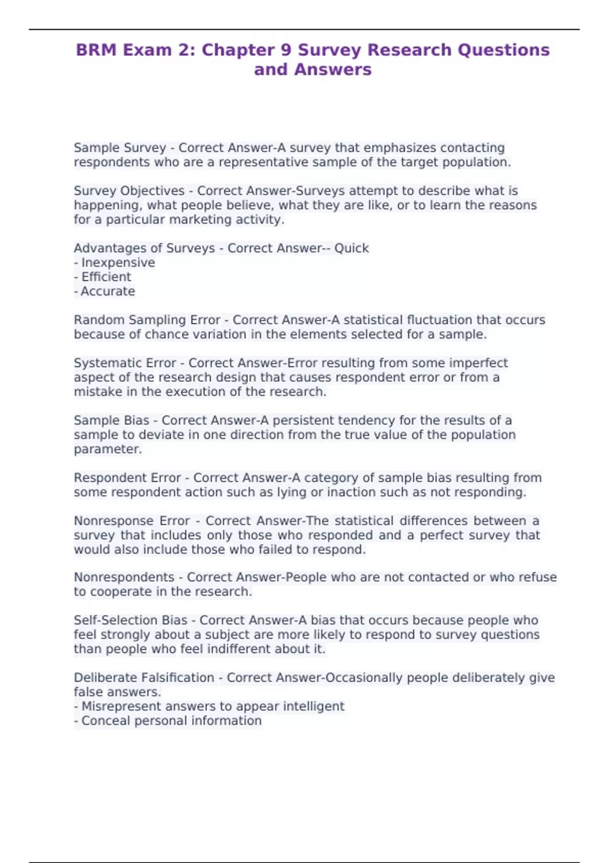 BRM Exam 2: Chapter 9 Survey Research Questions and Answers