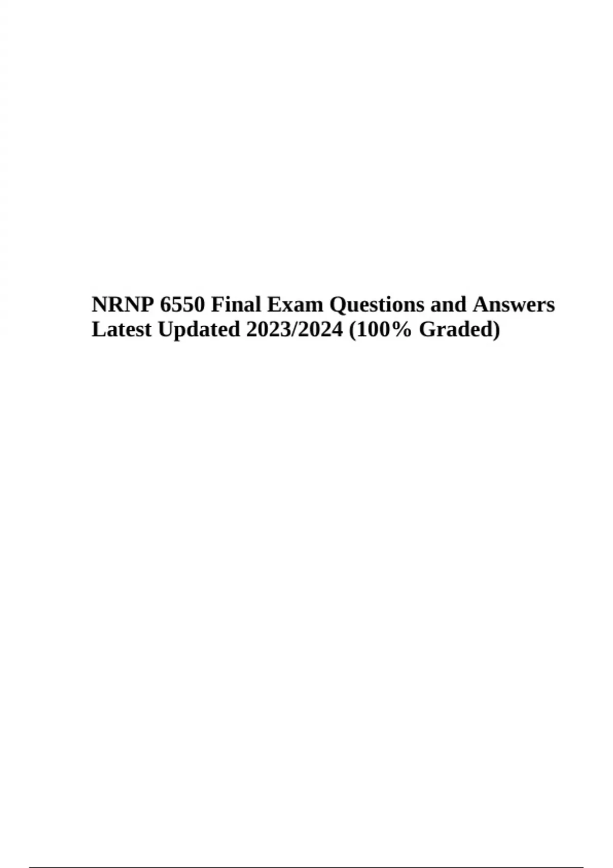 NRNP 6550 Week 4 - Conditions of the Cardiovascular System 2 (i-Human Alvin Stafford) | NRNP 6550 Week 7, Exam Conditions of the Renal and Genitourinary Systems | NRNP 6550 Final Exam Review Questions With Answers Latest 2023/2024 Graded A+ & NRNP 6550 Fi