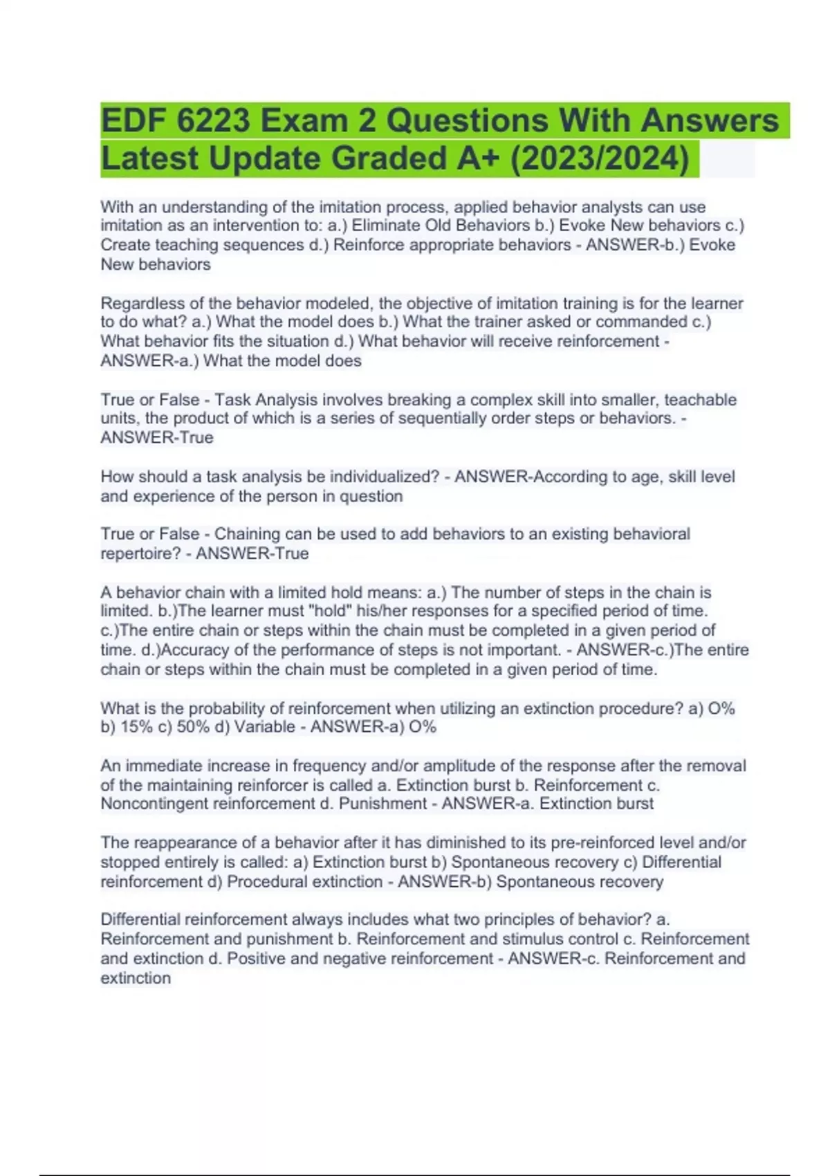 EDF 6223 Exam Questions and Answers Latest Update | EDF 6223 Exam 2 Questions With Answers Latest & EDF 6223 Exam Prep Questions With 100% Correct Answers Latest (GRADED 100%)