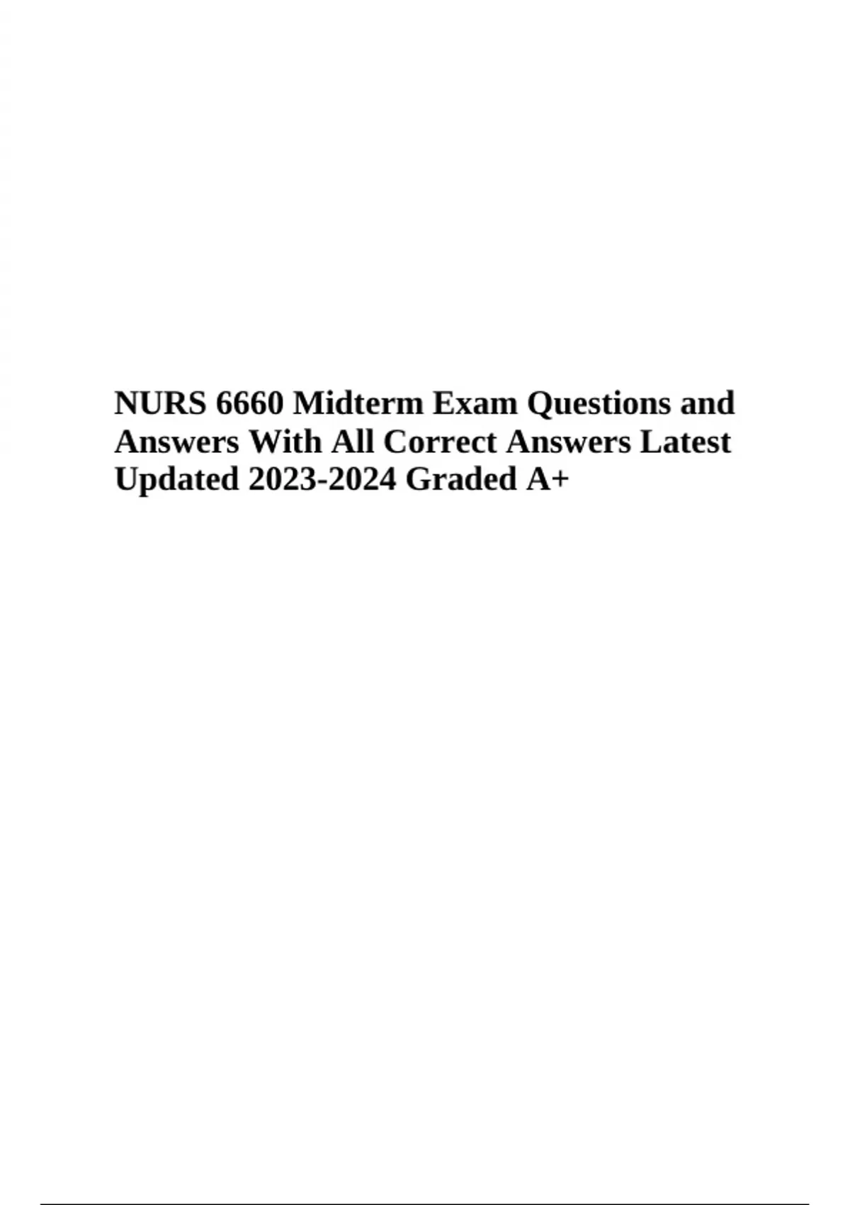 NURS 6660 Midterm Exam Questions and Answers With All Correct Answers Latest Updated & NURS 6660 Midterm Exam Questions With Answers Latest Graded A+ (100% VERIFIED)