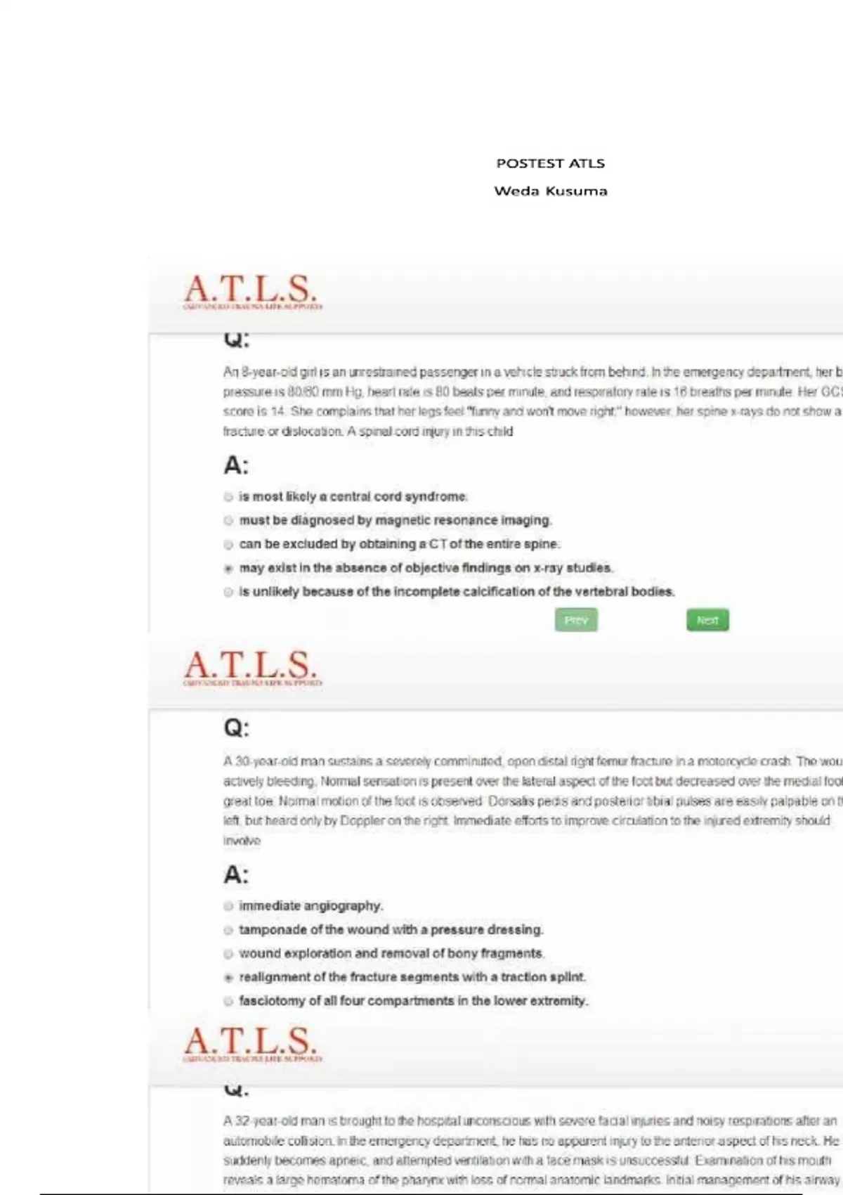 A PACKAGE DEAL FRO ATLS PRE-TEST AND POSTS TESTS ALL BUNDLED TOGETHER TO BOOST YOUR GRADES