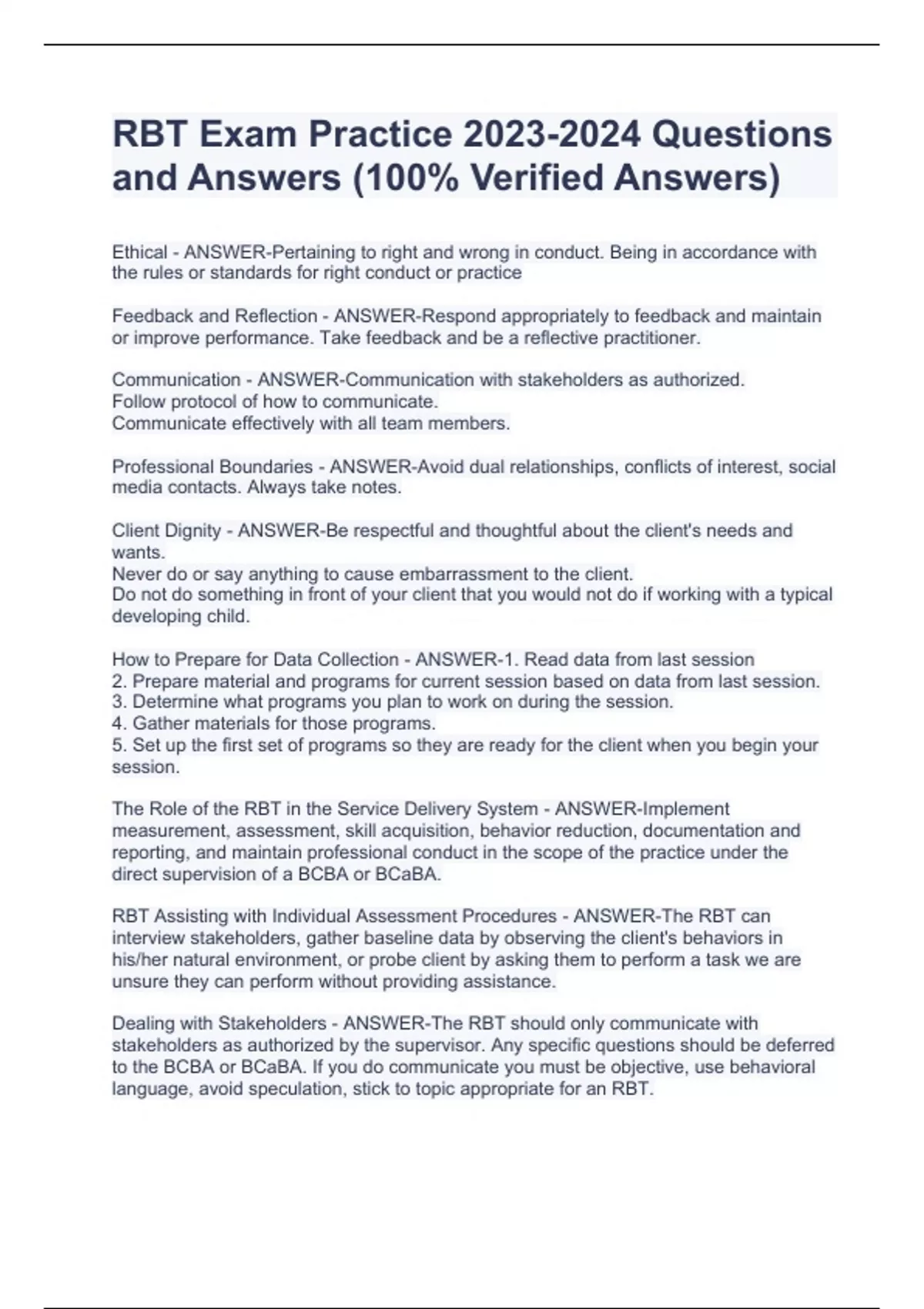 RBT EXAM STUDY BUNDLE| COMPLETE QUESTIONS WITH VERIFIED ANSWERS
