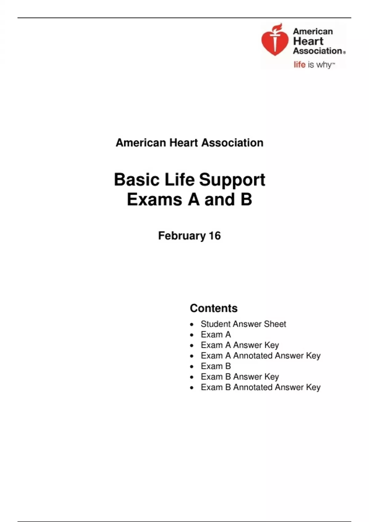 Summary AHA Basic Life Support Exams A and B: Answered Updated.