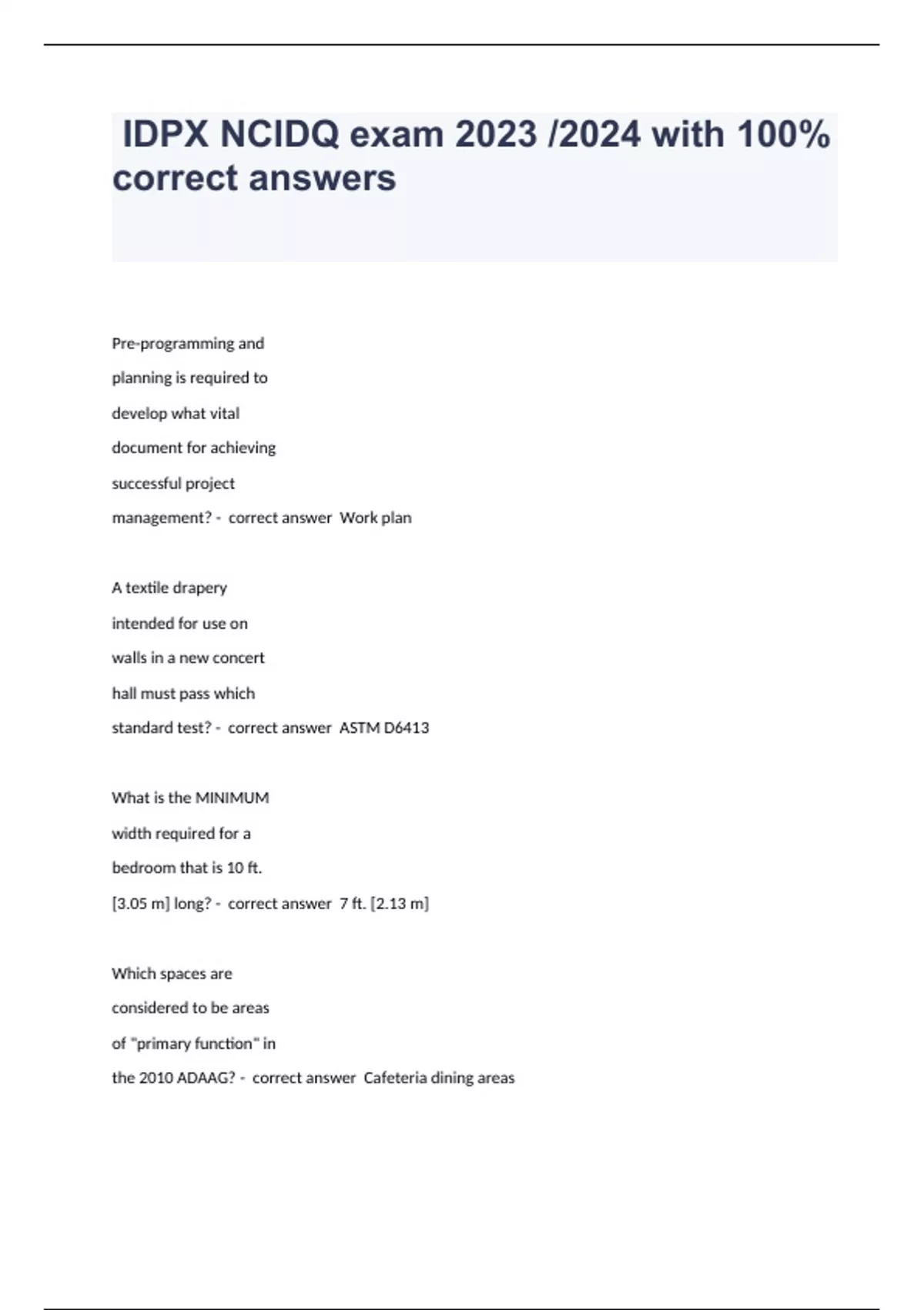 IDPX Practice Test A exam 2023/2024 with 100% correct answers IDPX NCIDQ Practice Exam 2023/2024 with 100% correct answers