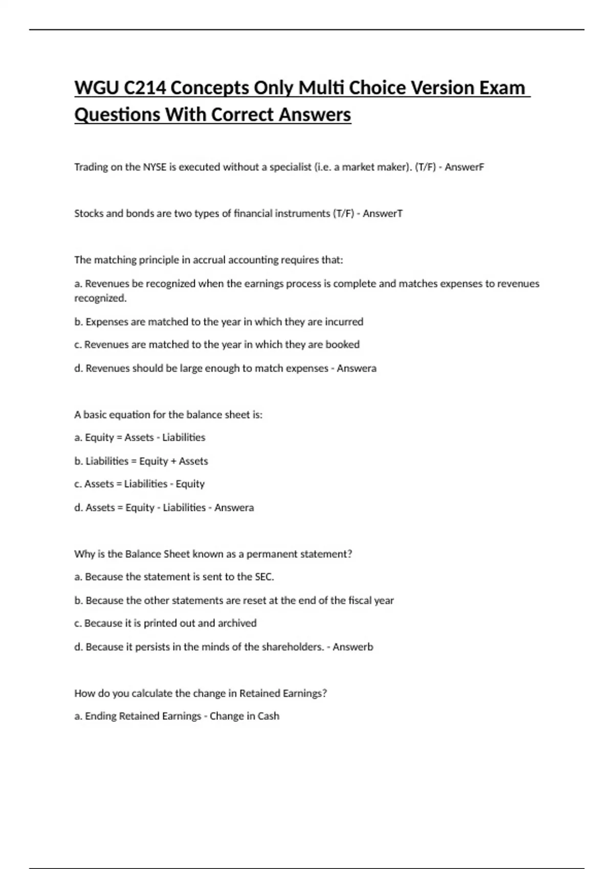 WGU C214 Exam, Financial Management, WGU C214 Final Exam, WGU C214 Pre-Assessment, WGU C214 Financial Mgmt, WGU C214 Exam, WGU C214, WGU C214 Exam Questions, Study Set, WGU C214 Exam, WGU C214 Exam Questions, Study Guide, Multiple Attempt Study Guide, Overview Concept Quiz, WGU C214 Study Guide Multi Choice