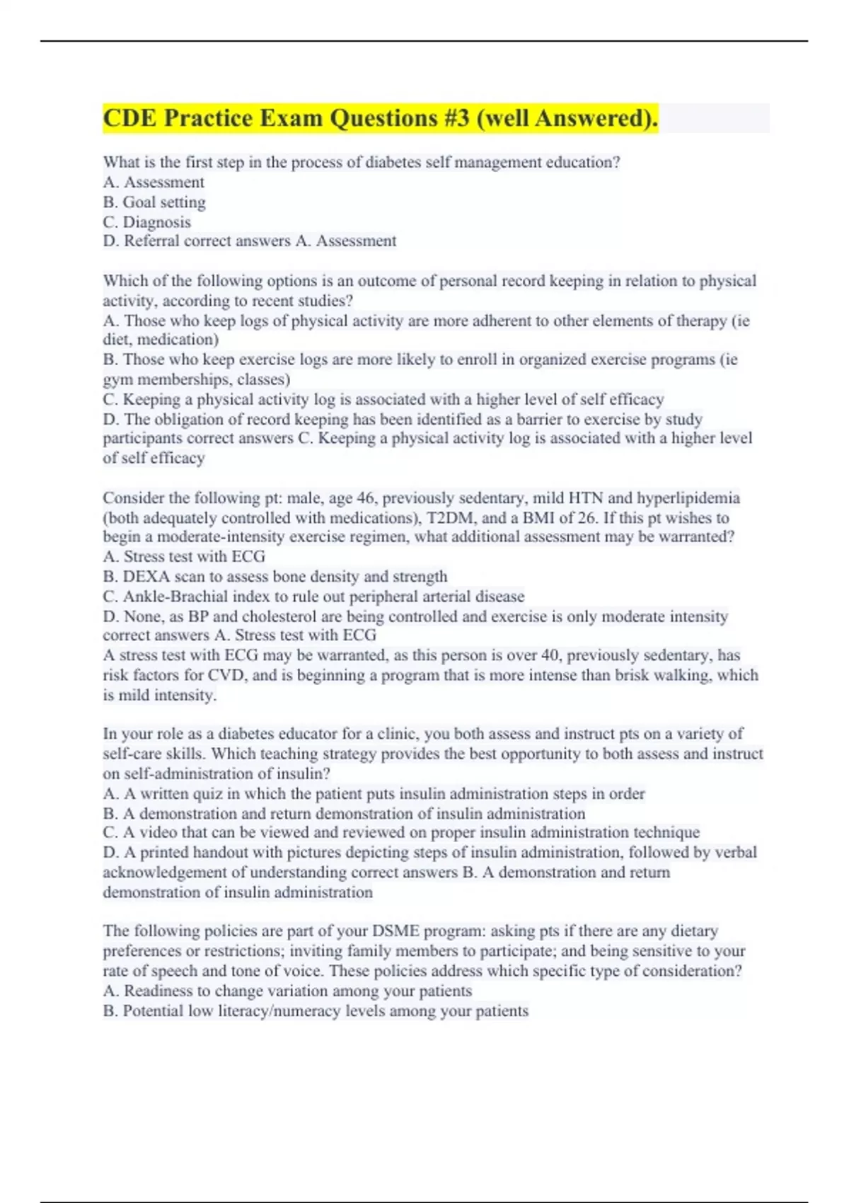 Certified Diabetes Educator Exam 1 (Solved Accurately) 2024. CDE Practice Exam Questions #3 (well Answered). Certified Diabetes Educator Exam - Based off of ADA SOC 2024 and AADE (All Correct) CANADIAN DIABETES EDUCATOR EXAM 2024 (A+ Graded Already) Certified Diabetes Educator Exam 5 (with Complete Solutions) 2024. Certified Diabetes Educator Exam