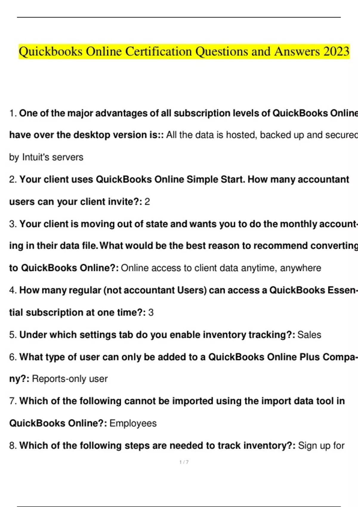 Quickbooks (Intuit) Certification Exam 2023 Questions and Answers